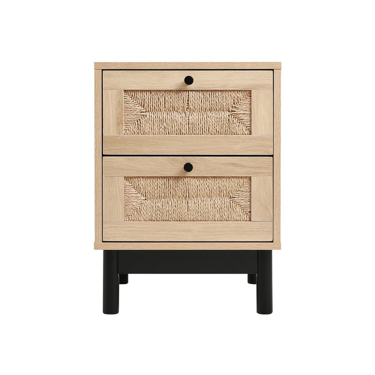 Small 2-Drawer Woven Bedside Table Cabinet - Natural