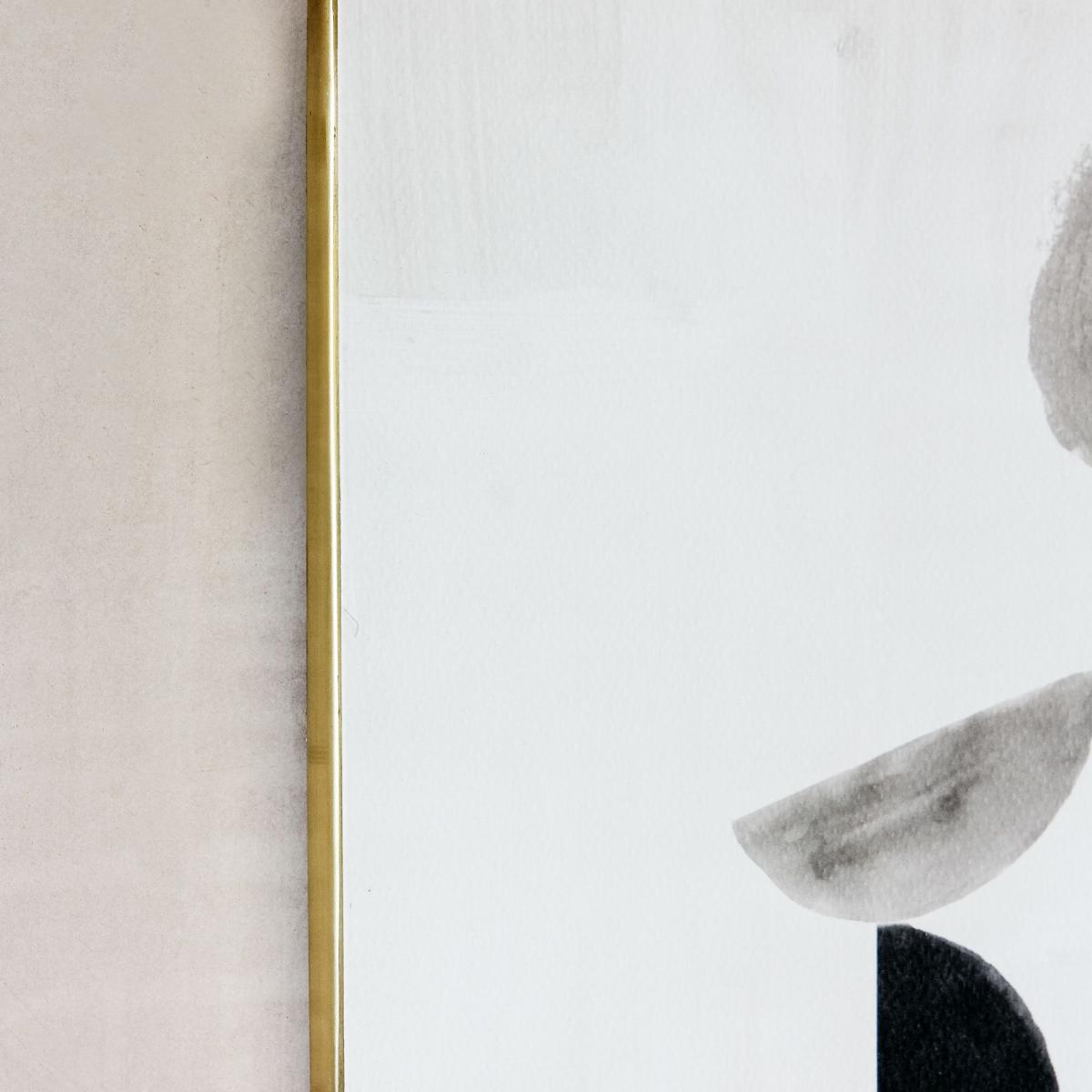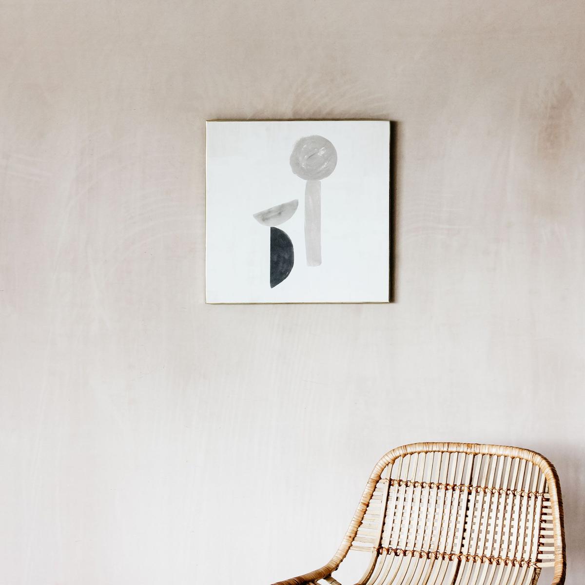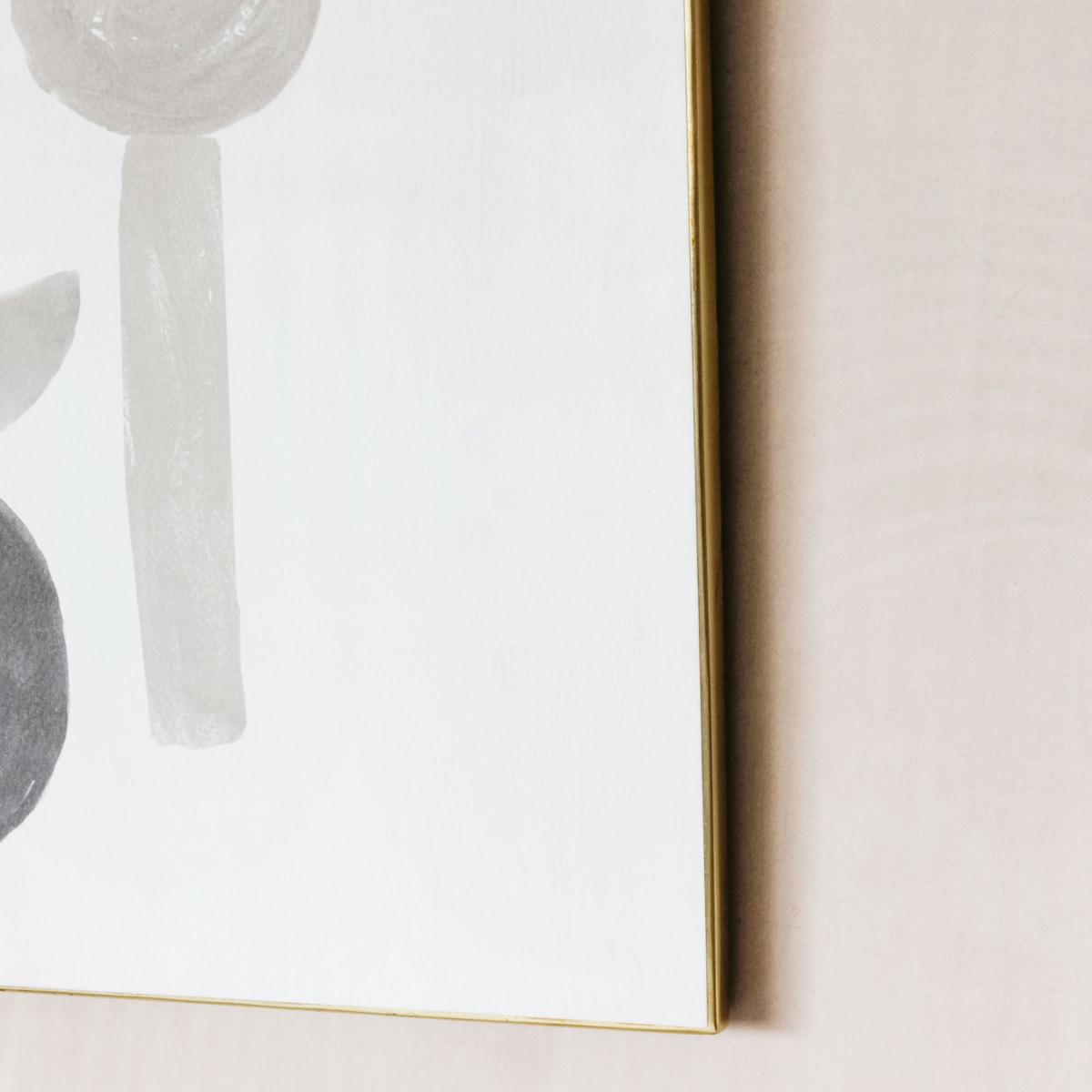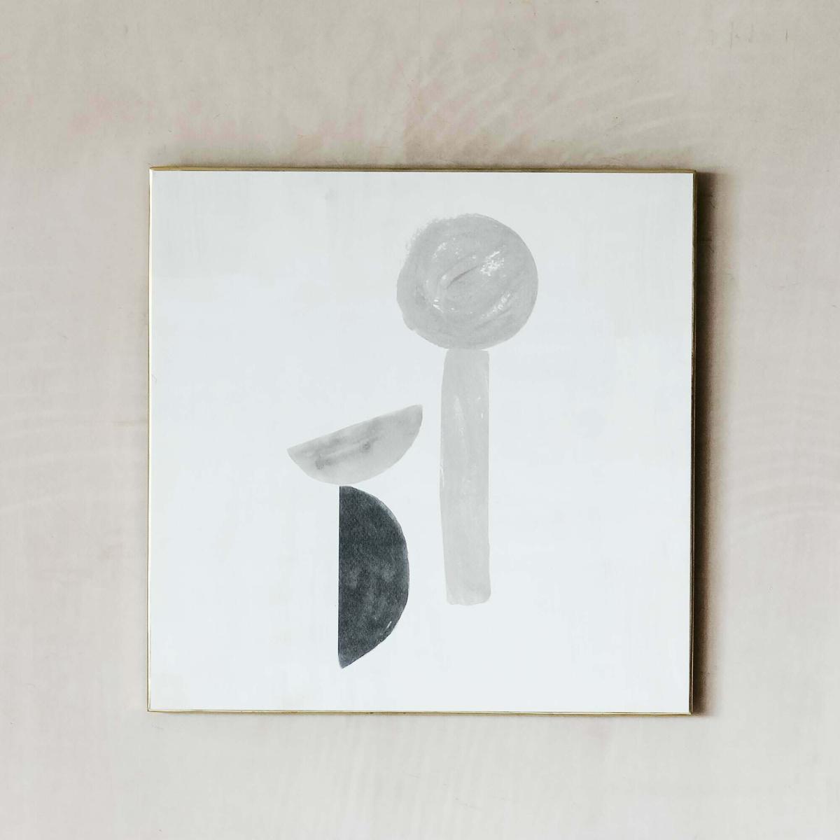I love this little print for its understated modern appeal. It works particularly well in minimalist, Scandinavian, or contemporary interiors where clean lines and neutral tones dominate. The abstract shapes add just enough visual interest without overwhelming the space, making it versatile for various room types-from living rooms to bedrooms. For styling, hang it at eye level above a sofa or sideboard, and consider pairing with soft textures or plants to soften the overall look. Its monochromatic palette also means it pairs effortlessly with both colourful and subdued colour schemes, offering a subtle art touch that can adapt as your decor evolves.