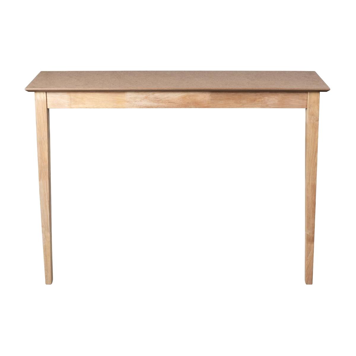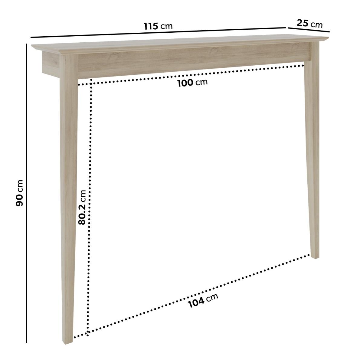 Features we love Small slimline wall-mounted console table. Unfinished ready for you to prime and paint. Its compact design slots neatly into small spaces. Perfect for displaying items on the slim tabletop. Mounts to the wall for a secure and sturdy fit All about me. This Ava console table makes the perfect space-saving solution for any room in your home short on space. Make a stylish statement and display photographs and ornamental accessories on the sleek tabletop without compromising on space. The wood is unfinished too so you personalise however you wish; all you have to do is prime it and paint it. Wall fixings are included so you can rest assured it’ll stay in place. Need to know. Dimensions. W115 x D25 x H90 cm Weight. 7kg Max load weight on top. 14kg Colour. Neutral Finish. Natural – ready to paint Material. MDF and rubberwood Fittings included. Yes wall mounting brackets Assembly required. Yes.