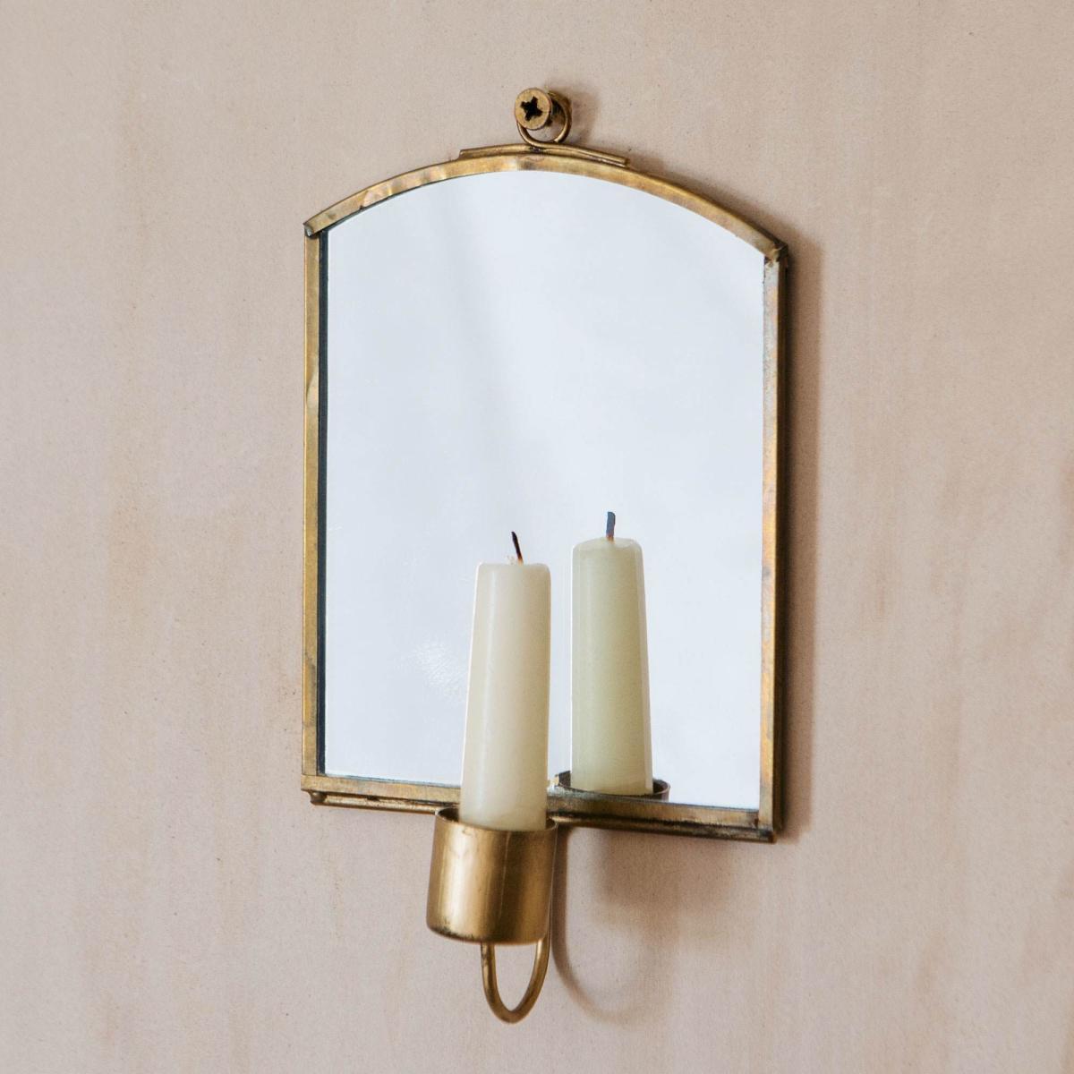 Small Antique Brass Candle Mirror
