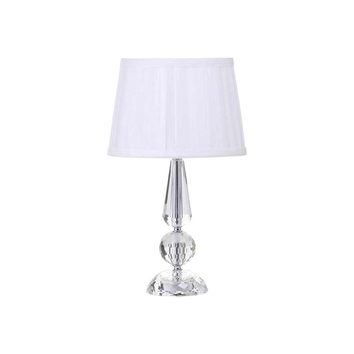 Elegant table lamps are a brilliant way to introduce a simple, versatile, yet incredibly effective way to introduce a softer, more atmospheric style of light to the room. This crystal glass piece is topped with a pleated white shade, which will diffuse the light for a soothing, relaxing glow. With intricate detailing across the base and stem, this sophisticated piece is a welcome addition to any elegant modern décor. crystal glass base and stem; white pleated shade; gives a soft, subdued glow to the room.