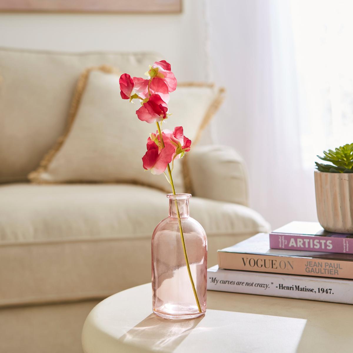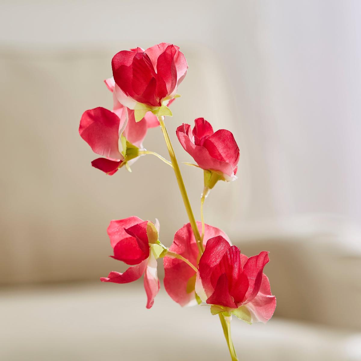 I love this small sweet pea stem for adding a pop of colour and a touch of softness to contemporary or vintage interiors. Its vibrant hot pink hue makes it a great statement piece in minimalist arrangements or paired with neutral tones for contrast. It works particularly well in glass vases or jam jars, combined with greenery or other colourful faux blooms to create natural-looking displays. Practical styling tips include grouping a few together for impact or mixing with other artificial flowers to customise a colour scheme. Since it’s fake, it’s perfect for rooms with limited natural light or for spaces that require low-maintenance decor, offering long-lasting colour without the fuss.