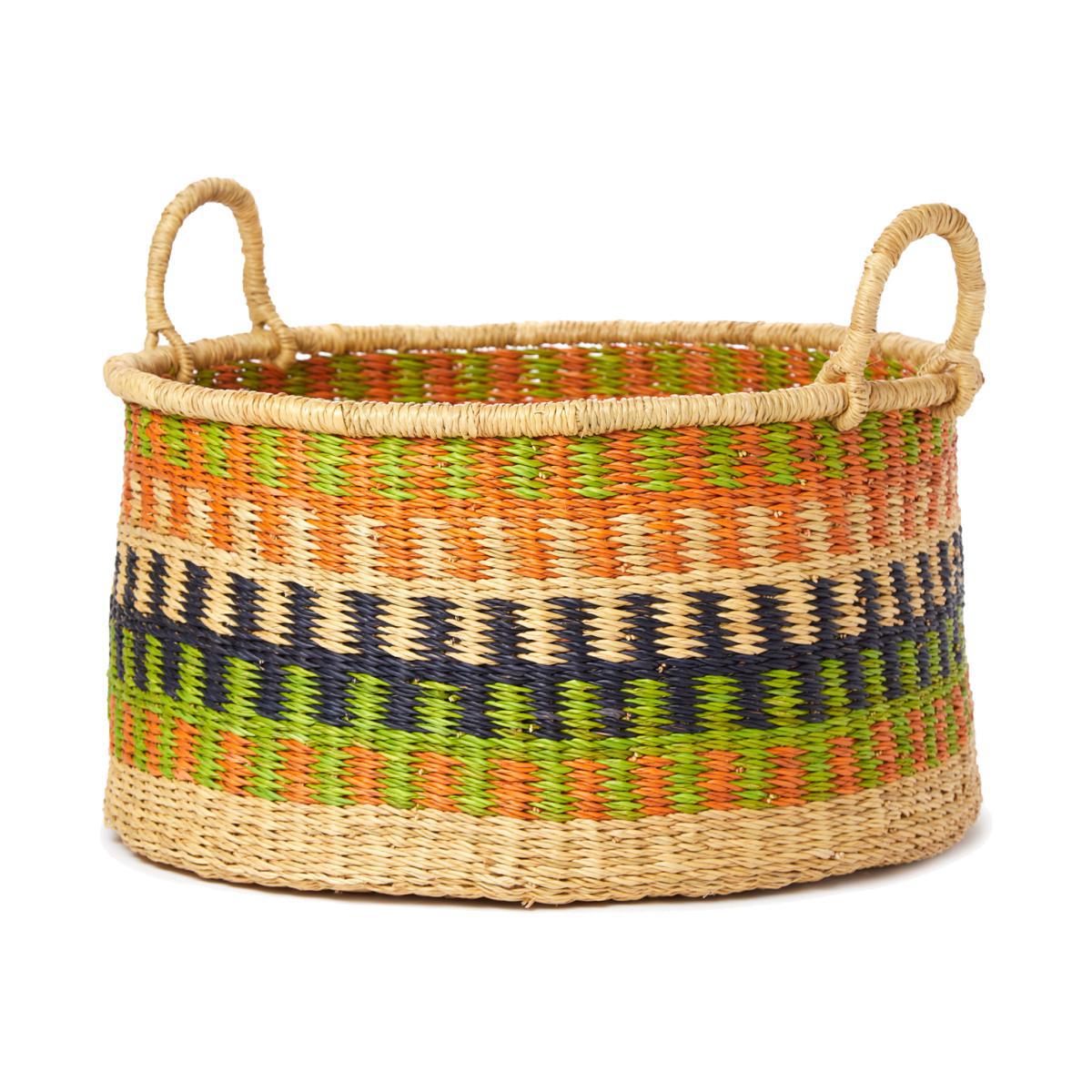 Minimalist and versatile, this small Circular Floor Basket was designed by The Basket Room and handcrafted in Northern Ghana. Woven from ethically-sourced veta vera grass, the sustainable material is known for its durability and natural texture. Spurred on by their love of basket weaving, Holly Dutton and Camilla Sutton founded The Basket Room. By supporting local communities in Rwanda, Ghana, Kenya and Swaziland, the workers benefit from fair wages, dignified working conditions and flexible working hours. Please note: The Circular Floor Basket is available in an assortment of unique finishes, one of which will be selected for you at random when ordered online. A lucky dip, if you will. Should you require a specific finish, or prefer not leaving these things to fate, we recommend visiting us in-store.