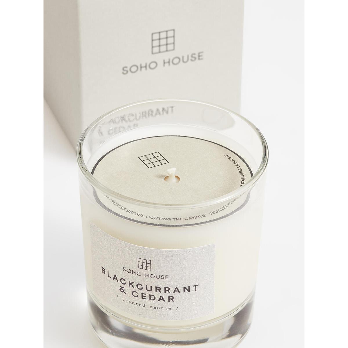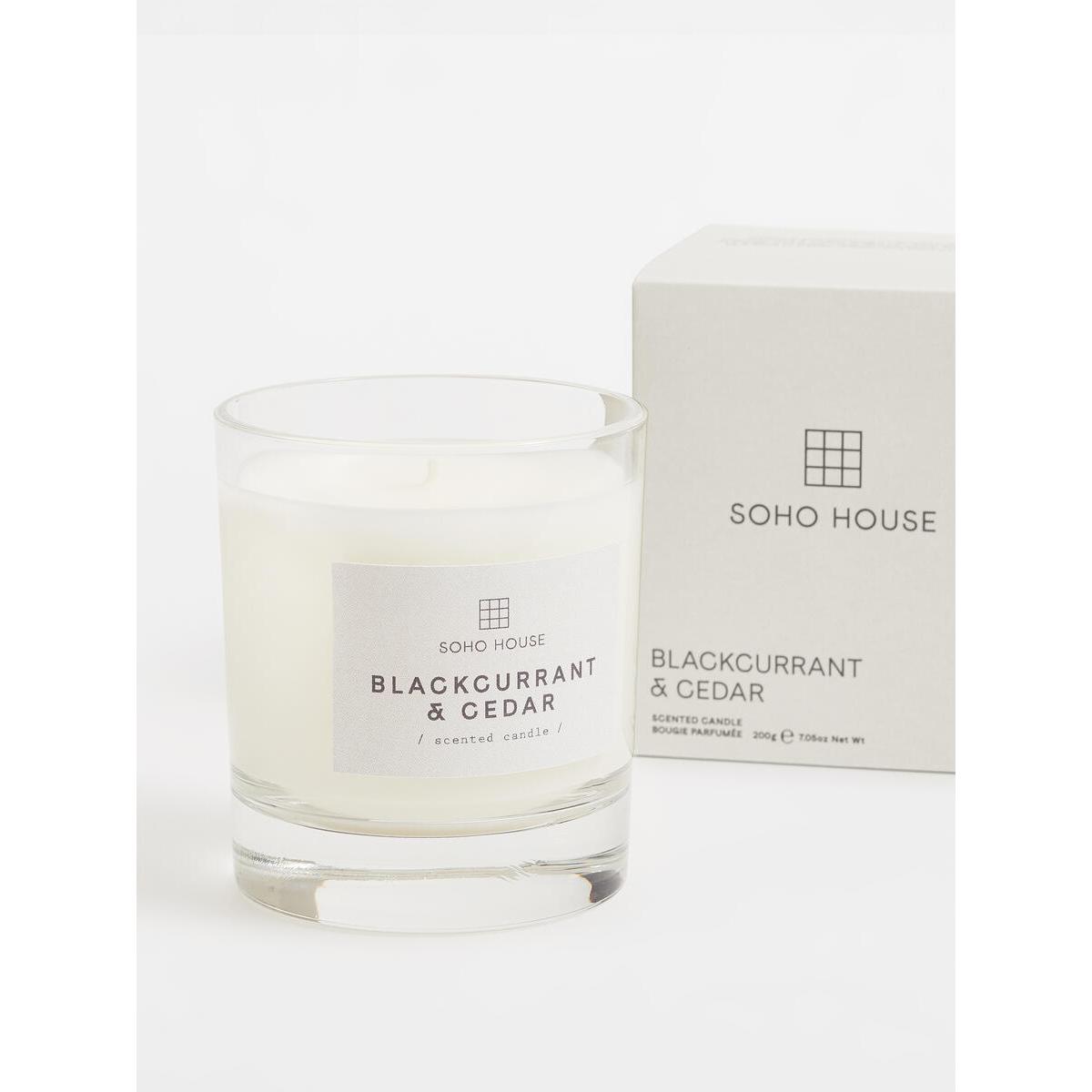 Capture the essence of an autumnal break at Soho Farmhouse withour Blackcurrant & Cedar fragrance. Infused with notes of. Cassis and warm spices, it's grounded by a base of Cedar, Amber andearthy Patchouli, bringing the fragrant notes of the Orchard and. Walled Garden to your home. Each candle is hand-poured in Englandusing a blend of mineral and vegetable wax to provide a clean burnand long-lasting scent release. Scent notes. Top: Cassis. Middle: Spices. Base: Amber. Small room candle with Blackcurrant & Cedarfragrance. Hand-poured in England. Vegan-friendly blend of mineral and vegetable wax. Approximate burn time: 45 hours. Bespoke fragrance created by an expert perfumer for Soho. House. Inspired by Soho Farmhouse and Babington House.