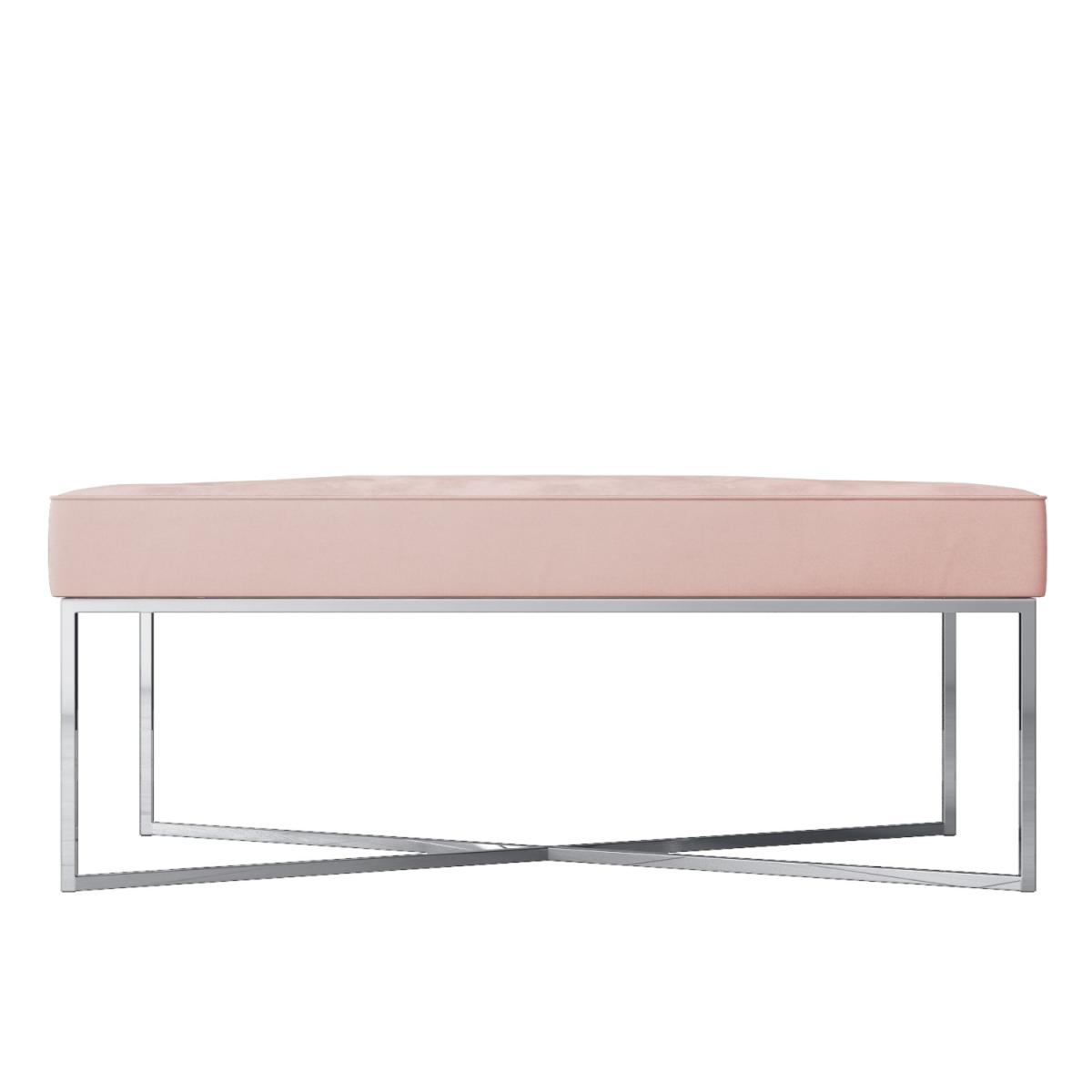 Add a hint of glam with this Esme bench. Beautifully upholstered in a plush pink velvet fabric, it features a quilted button topto give it an elegant and stylish finish. A shiny silver open frame base in a criss-cross design completes the look while also creating an illusion of space. It's perfect as additional seating and serves as a stylish footstool too. Position it in the hallway for practicality, in the hub of your living room, or bedroom at the end of your bed for an immediate focal point. There's no assembly either so can use it right away.