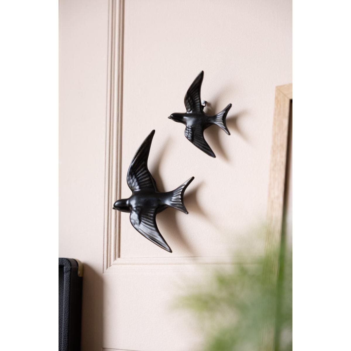 Introducing the Small Black Swallow Wall Decoration – a little bird with a whole lot of style. Sleek, simple, and effortlessly cool, this antiqued wall decoration adds instant charm and movement to your space. The smooth black finish gives it that perfect modern edge, while the swallow’s elegant shape keeps things soft and graceful. It’s ideal for room décor ideas, filling those tiny gaps on a gallery wall, adding a subtle accent to a shelf, or creating a whole flock of your own. However you style it, this little swallow brings a whisper of drama and a whole lot of personality. Small but mighty – this chic little bird is flying straight into our favourites list. - Small Black Swallow Wall Decoration - Measures: L8cm x W4cm x H9.5cm - Materials: Resin