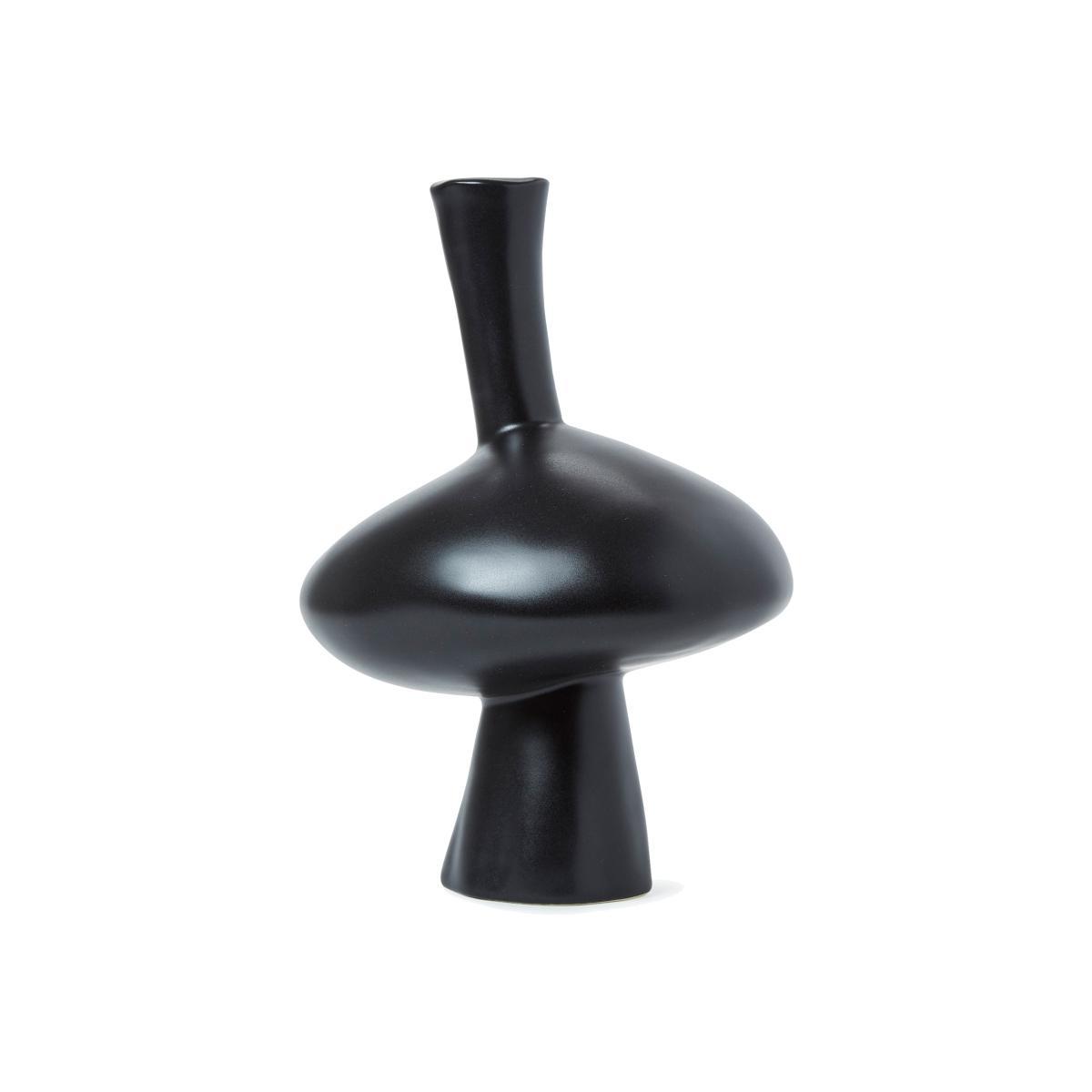 Contrast neat candlesticks with the abstract shape of Anissa Kermiche's small black Blobby Candlestick. Fashioned from ceramic in Portugal and finished with a striking matt black glaze, the curvaceous sculpture can nestle a candlestick or be left alone as a standalone artwork. Parisian Anissa Kermiche's eponymous fine jewellery and homeware brand is adding confidence and artistic expression to everyday life. Inspired by successful female role models as well as artists such as Alexander Calder and François Morellet, Kermiche reflects their boldness in her striking yet elegant designs. Care instructions: Wash with lukewarm water and air dry. Do not scrub.