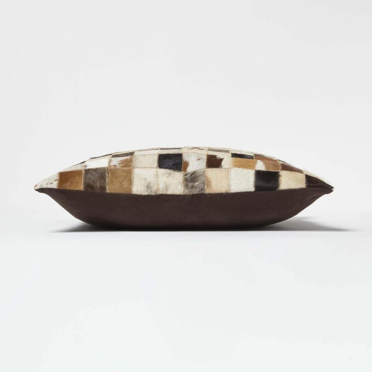I love this small block check cushion for adding texture and character to a variety of interiors. Its mix of brown and cream tones makes it highly versatile, perfect for neutral colour schemes or as a statement piece in a more eclectic set-up. I’d recommend pairing it with earthy tones or layered neutrals-think wool throws or wooden furniture-to enhance its cosy appeal. Practical styling tips include using it on a leather sofa or mixing it with other patterned cushions for an inviting, layered look. Its leather finish adds a touch of luxury, making it suitable for both modern and rustic spaces.
