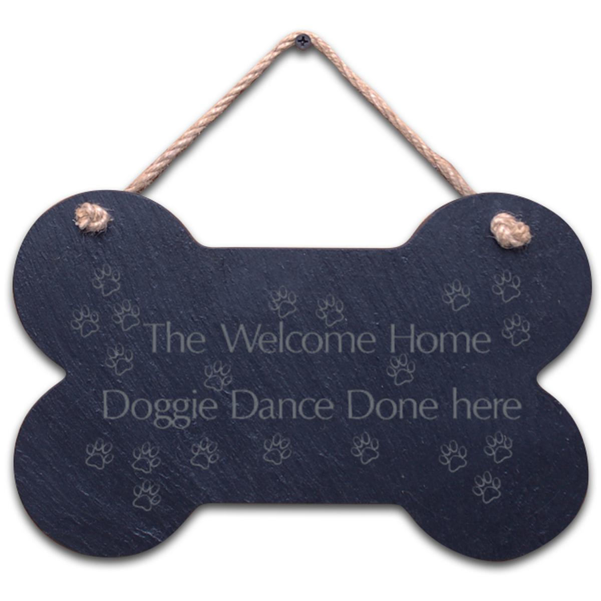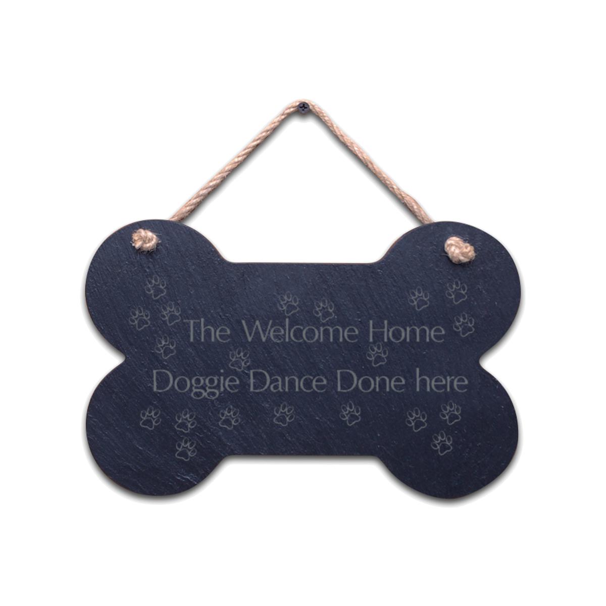 Small Bone Slate hanging sign - "The Welcome home doggie dance done here"