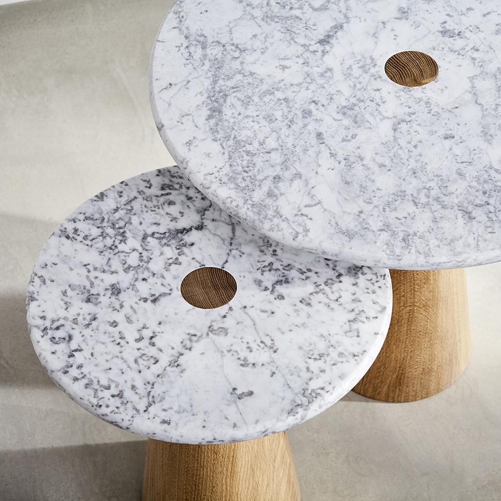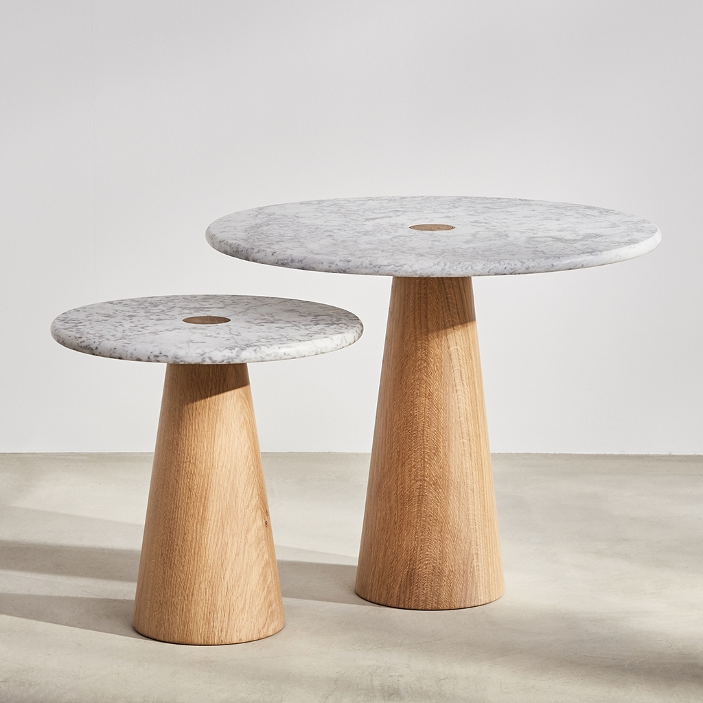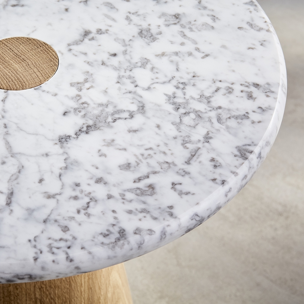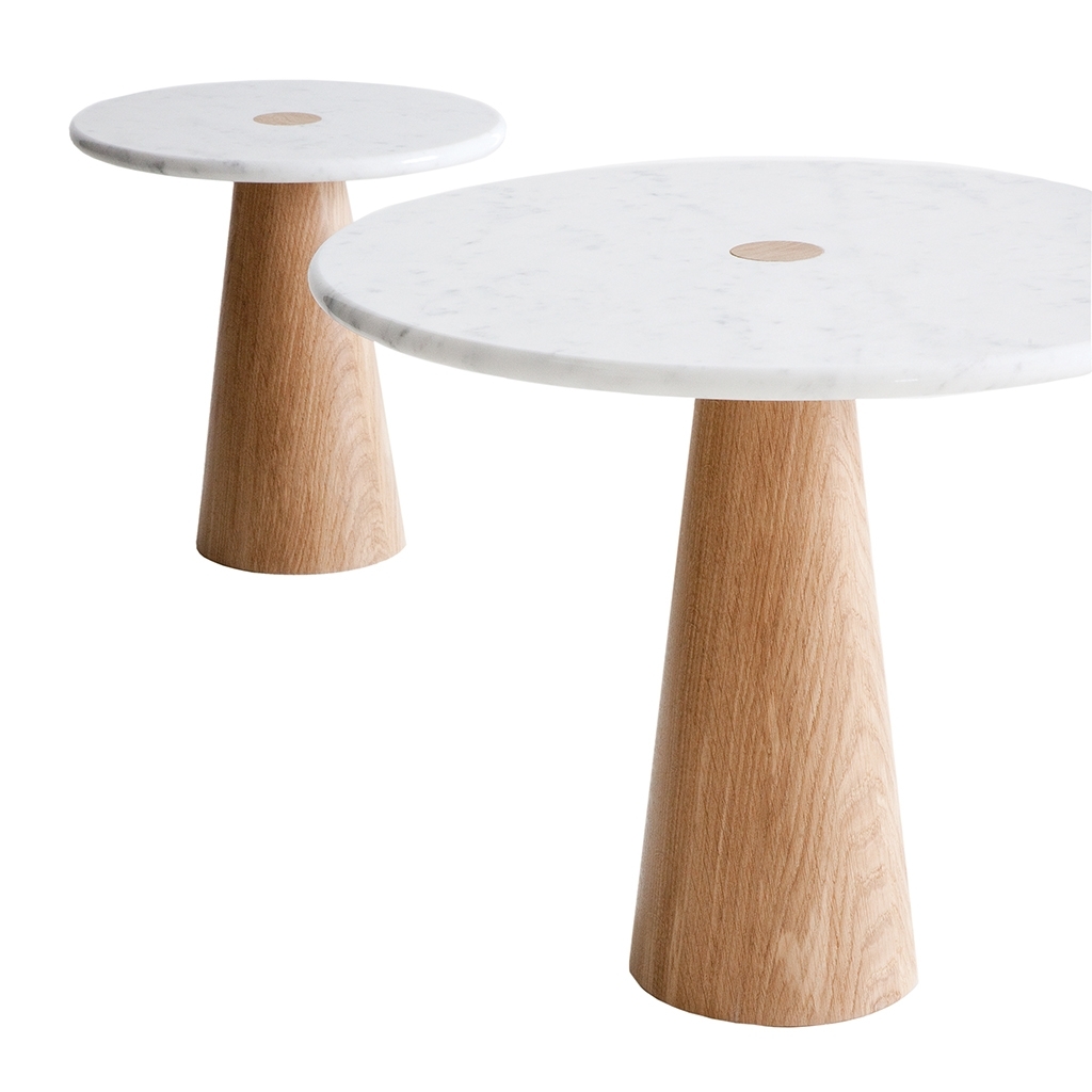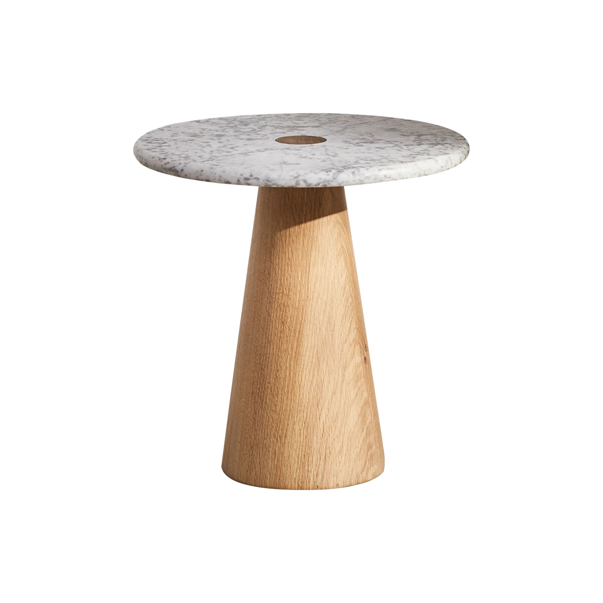 Designed by Sir Terence Conran, the small Brimstone Side Table in oak and Carrara marble is handcrafted by Benchmark in the UK. Showcasing a solid oak pedestal base with a Carrara marble tabletop, the table is defined by its exquisite detailing, such as the exposed dovetail joints. Created by our founder, Sir Terence Conran, alongside furniture-maker Benchmark's Sean Sutcliffe, Benchmark works with the world's leading designers to create bespoke designs. Its team of skilled craftspeople pay an unparalleled level of detail to each piece of furniture they craft to achieve a finish that cannot be matched through mass manufacturing.