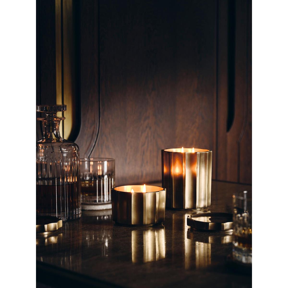 The small Cavendish candle is crafted from brass that will naturally patina beautifully over time. It takes inspiration from our Hong Kong House and the rich jewel tones seen throughout the interiors. Use it to fill the air with our Leather & Oud fragrance for a deeply aromatic scent that's reminiscent of nightcaps at Soho House Hong Kong. Scent notes Top: Oud Middle: Patchouli Base: Sandalwood Small brass candle Infused with our Leather & Oud fragrance Solid cast Hand-poured in England Vessel can be reused for storage Bespoke fragrance created by an expert perfumer for Soho House Inspired by Soho House Hong Kong
