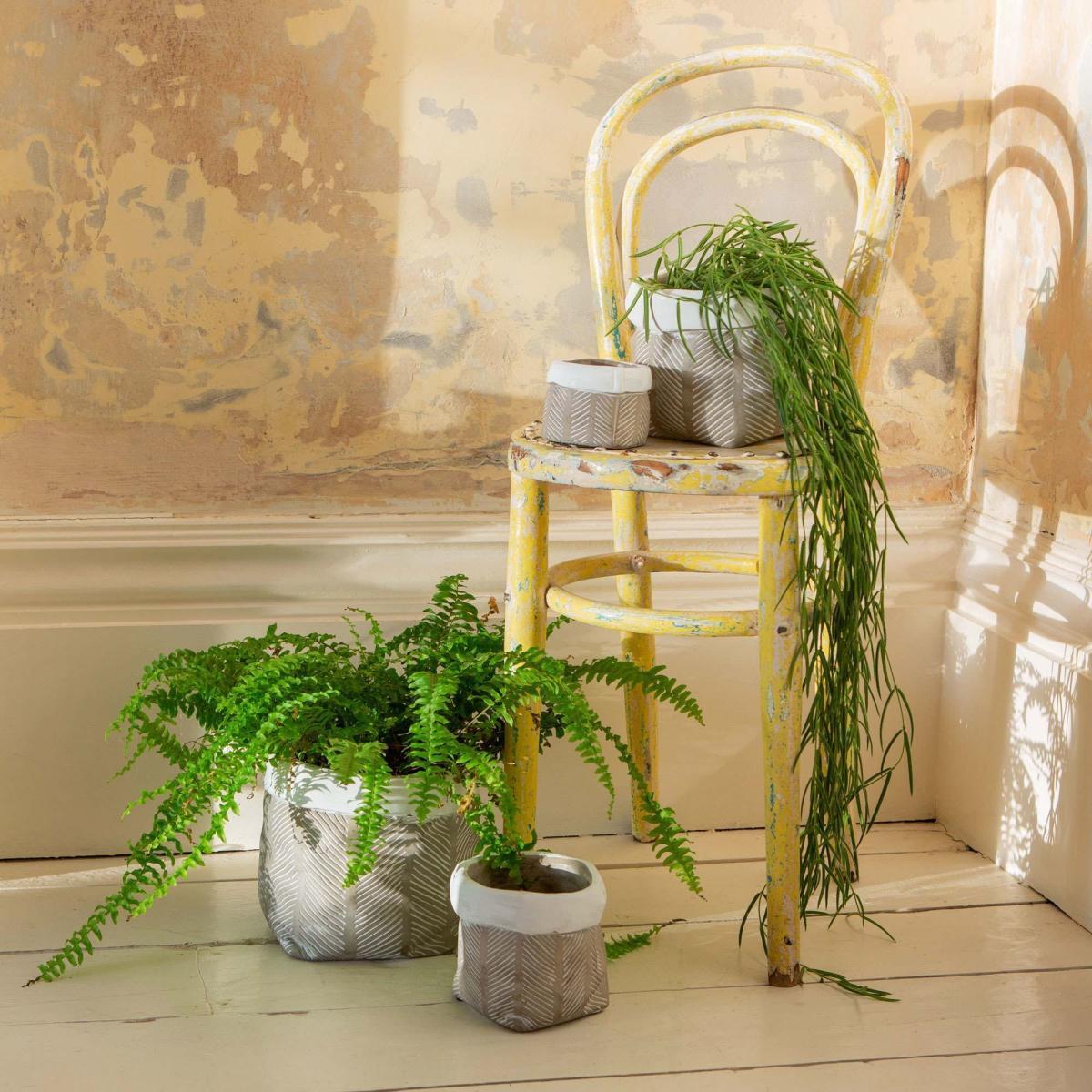 I love the small chevron concrete pot for its understated textured look that adds subtle interest to a minimalist or industrial-style space. Its neutral tone makes it versatile enough to complement both modern and rustic interiors. This pot works especially well with trailing plants like pothos or spider plants, creating a relaxed, natural vibe. For styling tips, try grouping it with other earthy or matte finishes, or use a splash of colour in nearby accessories to make the plant pop. Its size makes it ideal for desks, windowsills, or side tables, where it can bring a touch of greenery without overwhelming the space.