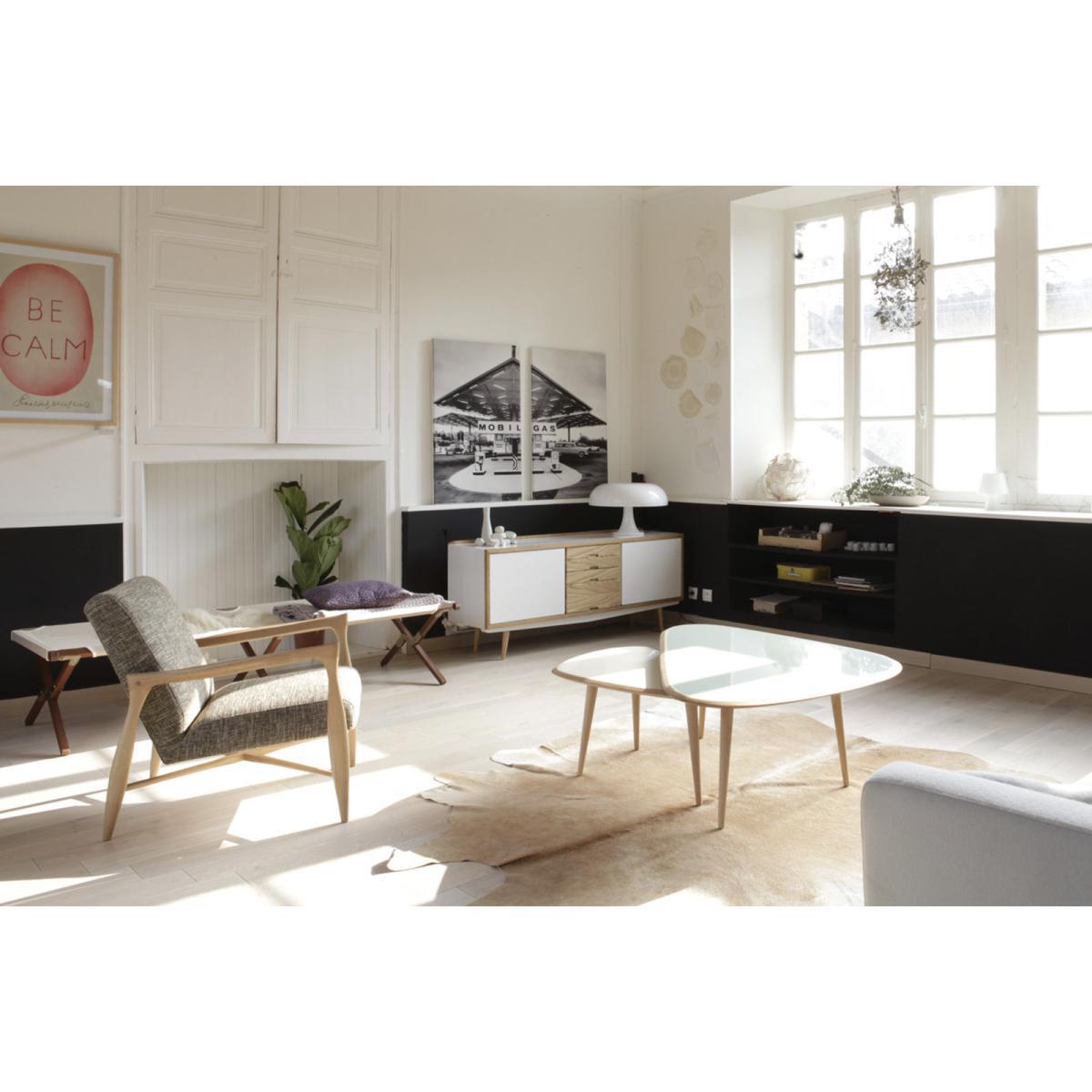 With its slender tripod base and curves, this coffee table is inspired by fifties elegance. The bold curves of its bean-shaped top display organic forms inspired by Scandinavian nature. To create this collection, British designer David Hodkinson took inspiration from the 50s and 60s, and in particular Scandinavian design and its legendary designers such as Finn Juhl and Alvar Aalto. This vintage style coffee table combines solid oak with beautiful touches of colour in traditional lacquer that give it brightness and modernity. Hand-made, this table requires meticulous workmanship and irreproachable know-how to obtain these deep and ultra-brilliant colours through the application of successive layers of traditional lacquer. The oak contours of the top emphasise the organic shape and contrast with the gloss of the coloured lacquer. The Red Edition coffee table comes in a wide range of colours and trendy materials and so adapts to all types of interiors. Available in 2 sizes, Red Edition coffee tables allow infinite combinations in pull-out mode. In Small version, it can also be used as a bedside table or end of sofa. Red Edition coffee tables are also perfect in a child's room since their bean shape has no dangerous corners.