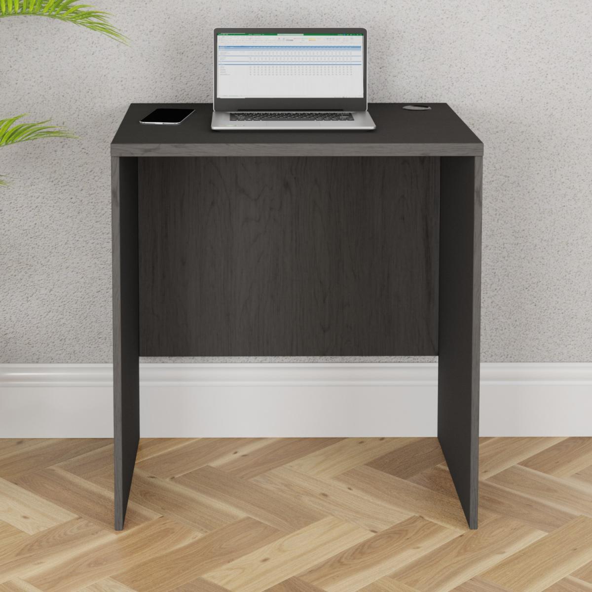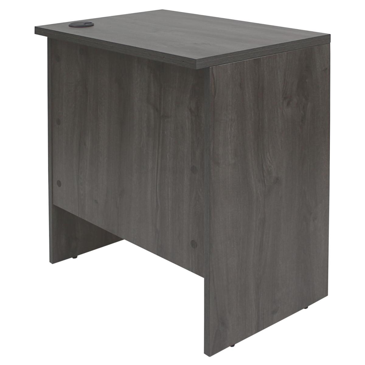 Dimensions:H76 x W65 x D46 cm An attractive, modern styled, ready to assemble practical medium open desk suitable for home office environments. Features: Manufactured in a stylish smoked oak effect Finished in a robust, easy-clean surface resistant material to withstand the rigours of everyday life Features 25mm thick tops with durable PVC edging and18mm thick back panels for rigidity and strength Adjustable foot levellers to allow for uneven floors The desk provides plenty of leg room and a great working space for laptops, computers, writing or drawing Features a cable tidy on the top surface enabling easy access to power points