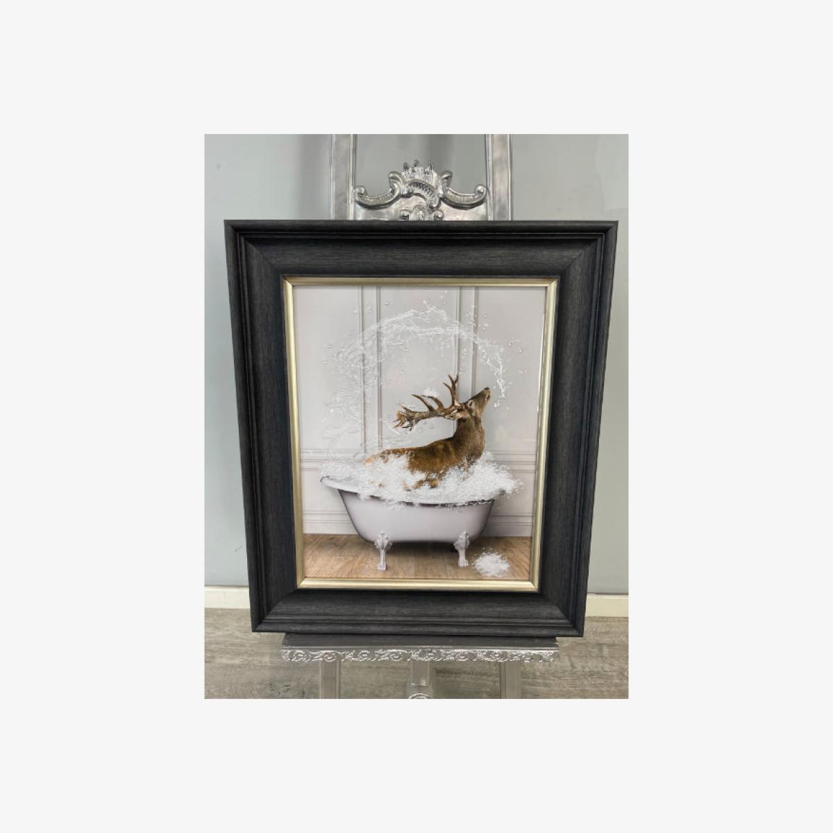 Majestic bathing deer in black frame An ideal addition to your living rooms, bedrooms and dressing rooms. Majestic bathing deer in black frame An ideal addition to your living rooms, bedrooms and dressing rooms.