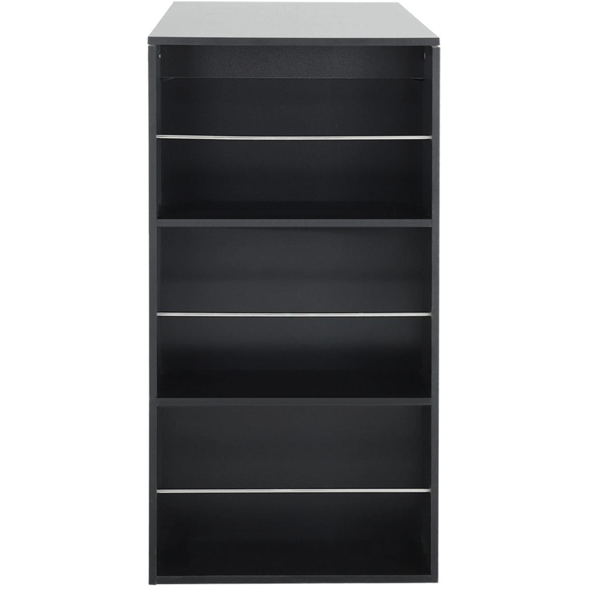 I love this little black bar table because of its compact design and versatility, making it perfect for smaller spaces or urban kitchens. It works well in modern or industrial interiors, especially when paired with sleek bar stools or minimal accessories to keep the look clean and functional. For styling tips, consider layering with a few colourful or textured accessories on top-like a small plant, candles or stylish glassware-to add personality without clutter. Its simple black finish means it can seamlessly blend into a variety of colour schemes, acting as both practical surface space and a subtle design feature in your dining or entertainment area.