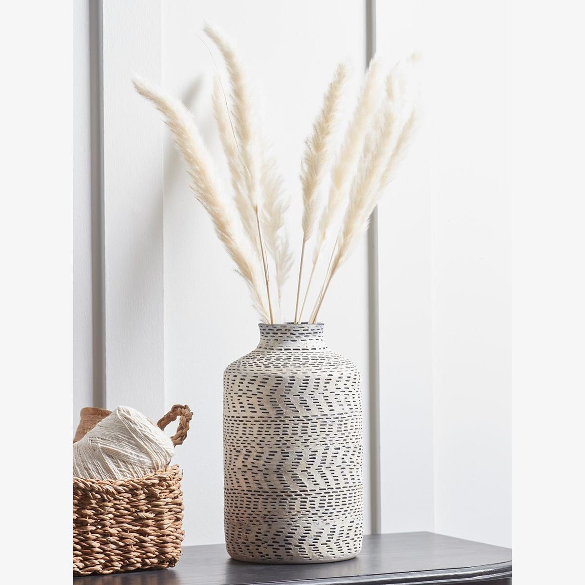 I love this bunch because it brings a natural, textural element to various interiors, especially in minimalist or boho-inspired spaces. The small dried pampas grass is versatile and adds visual interest without overpowering a room. It works well in simple vases like ceramic or woven options, placed on side tables, shelves, or even in bathroom settings to soften the overall look. For styling tips, consider grouping with other neutral-toned or complementary faux botanicals for a layered effect, and remember to occasionally dust to maintain its fresh appearance, keeping your display looking effortlessly curated.