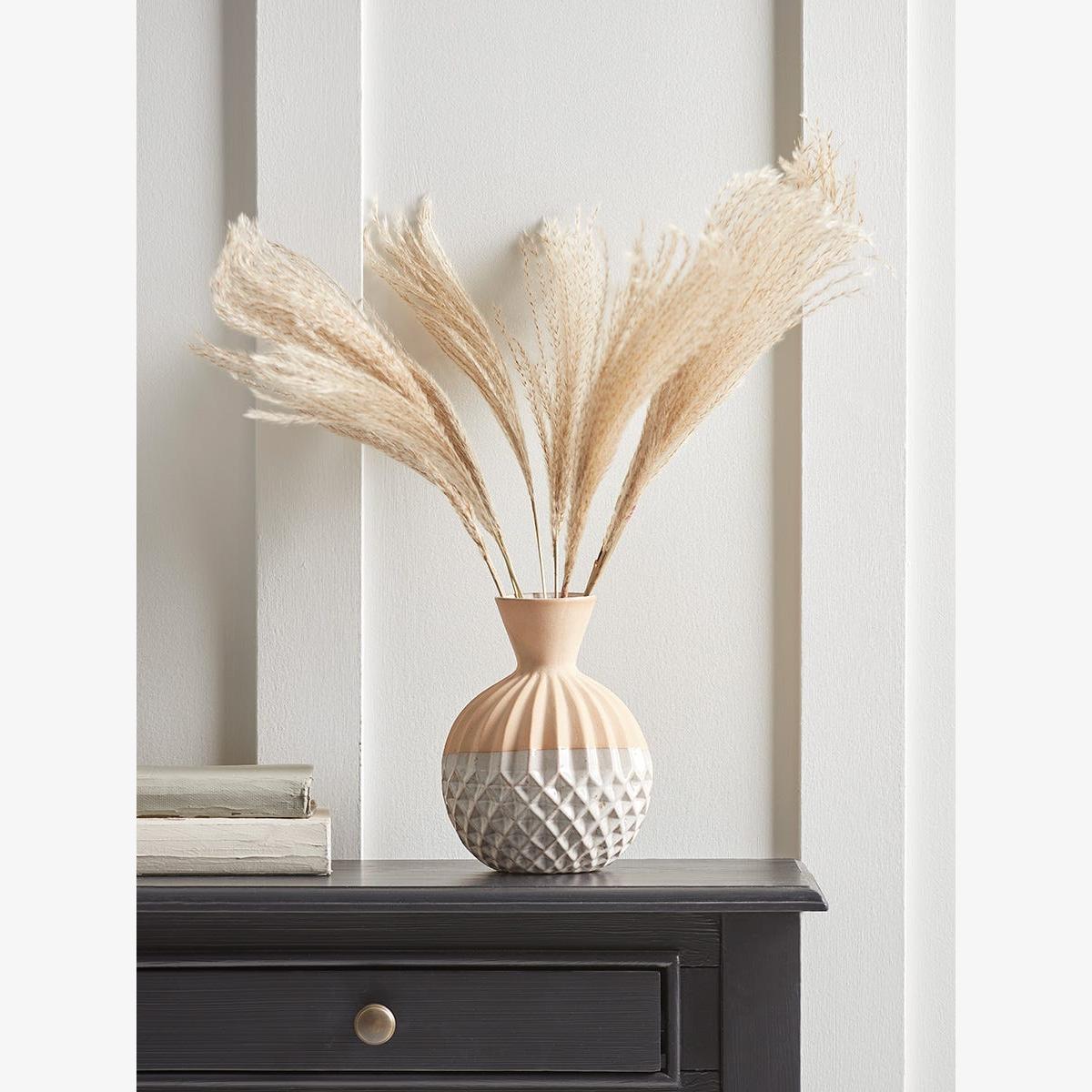I love this small dried reed bunch for its natural, understated texture, which adds a touch of organic warmth to any space. It works particularly well in minimalist or Scandinavian interiors, where its neutral tones can complement wooden furniture and soft textiles. For styling, try placing it in a simple vase on a sideboard or console table to create a relaxed, contemporary look. It also pairs nicely with other dried floral arrangements or greenery, making it versatile for both colour-coordinated displays and more eclectic setups. Practical tip: since it’s artificial, it’s low-maintenance and perfect for adding a bit of natural interest without the upkeep of fresh flowers.