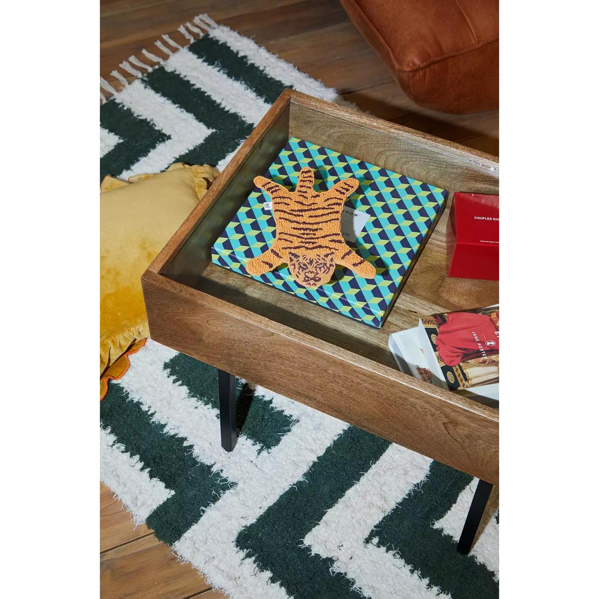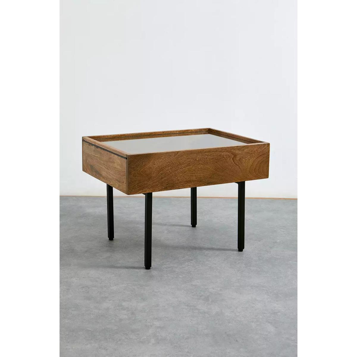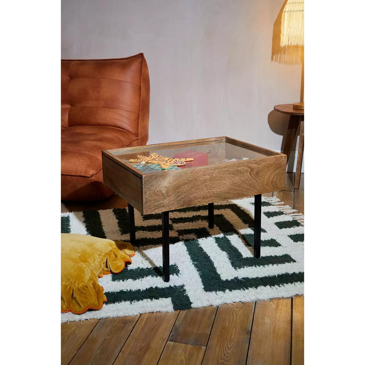 Complete your space with this square coffee table. Crafted from a smooth wood featuring four tapered legs. Complete with a sliding glass upper. *Online return only. This item cannot be returned instore. Please note furniture items currently cannot be shipped to Northern Ireland or The Republic of Ireland. Delivery of large furniture items may take 1-2 weeks and are therefore not eligible for Next Day Delivery.* **Content + Care** \- 70% Mango Wood, 15% Iron, 15% Glass \- Wipe clean