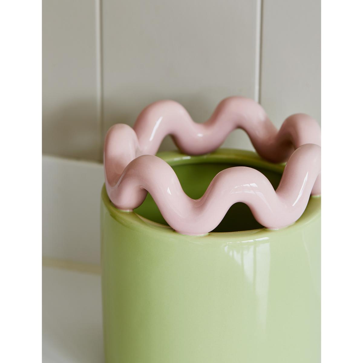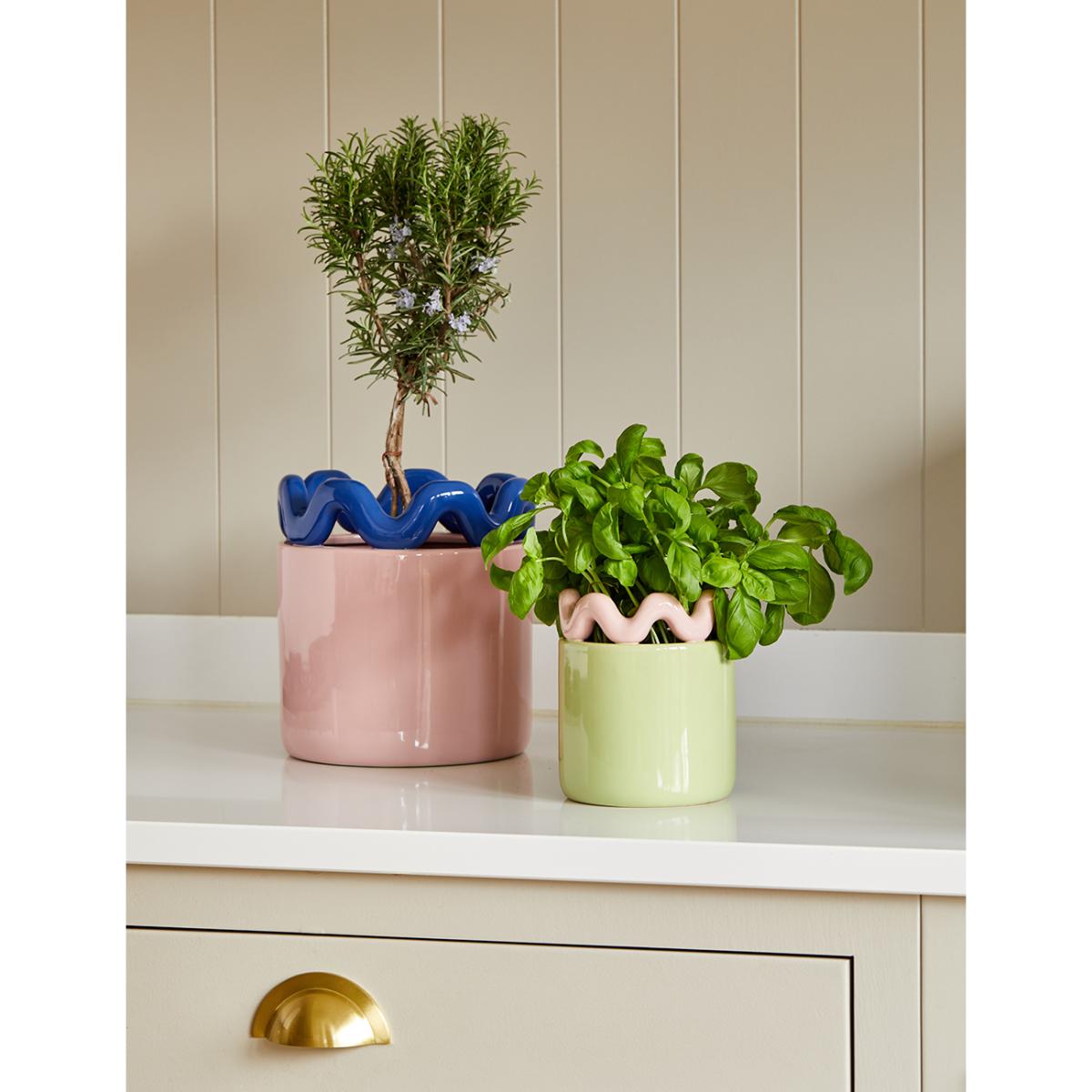 Treat your plants to the home they deserve with our Small Green & Blush Pink Wavy Plant Pot. Crafted from durable stoneware, this plant pot is 15.5cm in height and 12.5cm in diameter, so your plants will have plenty of space to thrive and flourish. With its stylish pink and green colour scheme and glossy finish, this planter will beautifully complement your favourite house plants for years to come. Our wavy-top plant pot is also available in a larger size in navy and pink colourway.
