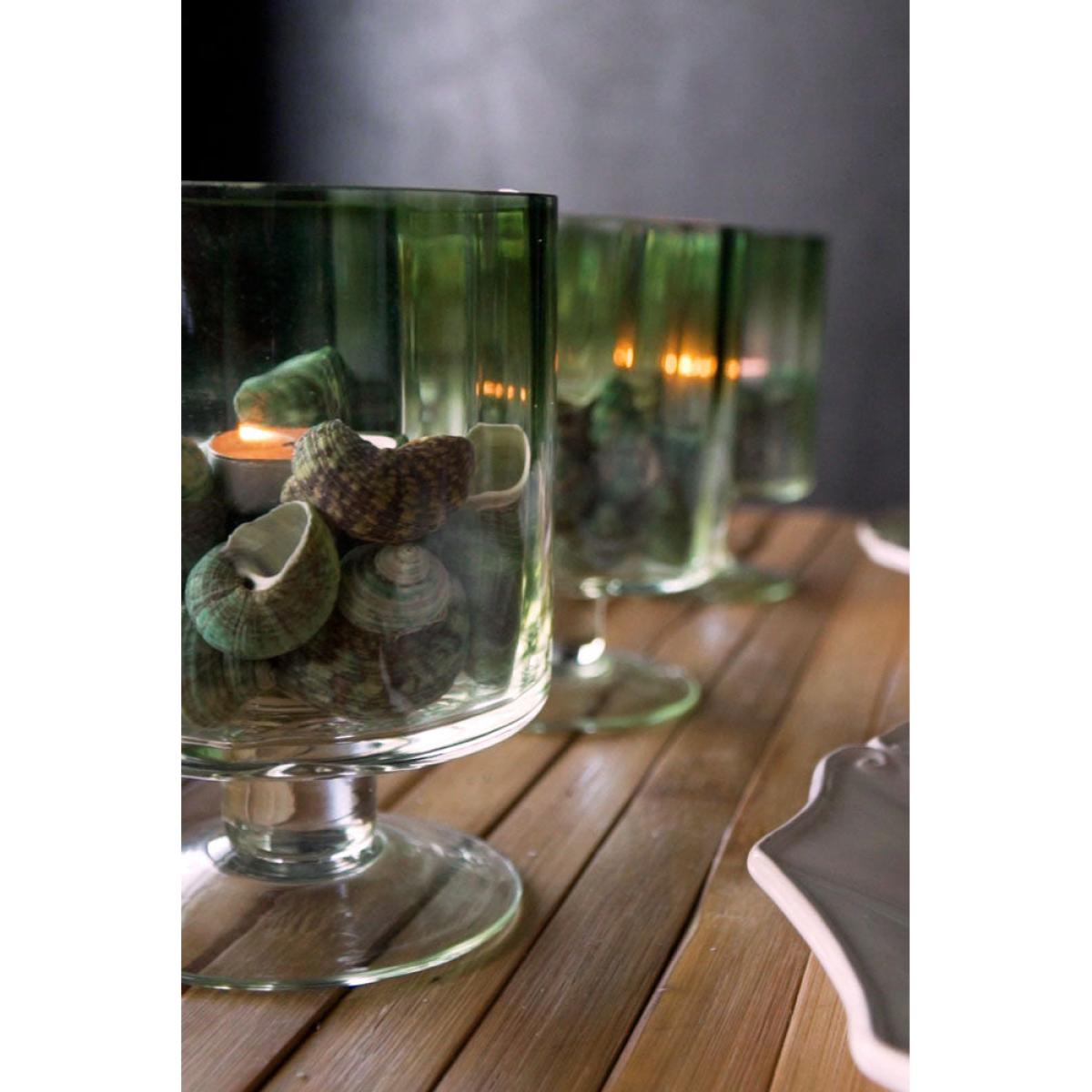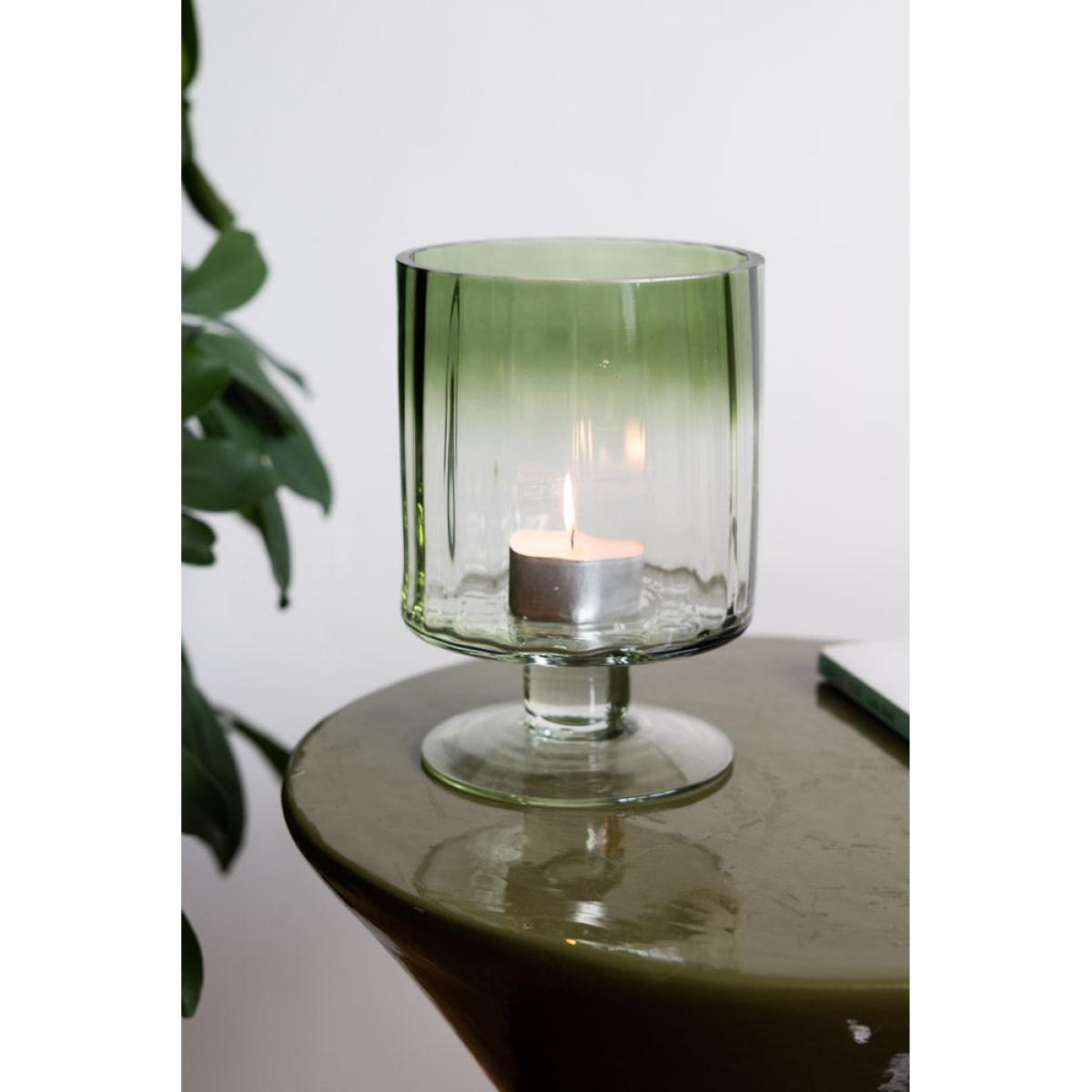 About The Small Green Hurricane Candle Holder / VaseIntroducing a gorgeously green tint to your shelves or surfaces, the Small Green Hurricane Candle Holder is the perfect base for pillar candles. Made from glass, the candle holder features a chic ombre finish with subtle shades of green. Standing tall at 15cm with an 11.5cm diameter, the glass candle holder fits a tea light or medium pillar candle. Why We Think You’ll Love The Green Glass Hurricane Candle Holder / VaseThe trend for tinted glass is showing no signs of slowing down and the stylish Green Hurricane Candle Holder or Vase offers a timeless take on this trend. Small but beautiful, the candle holder is perfect for introducing the magic of candlelight to your home and can be displayed anywhere, from shelves to windows, the mantelpiece or the bathroom. How To Style The Coloured Glass Vase / Candle HolderThe Green Hurricane Candle Holder looks great on your dining table with a set of two or three positioned alongside candlesticks to create a romantic glow of light. Alternatively, why not style the candle holder as a flower vase for single stems of your favourite seasonal blooms? Or, you could even use the Small Green Hurricane Candle Holder / Vase as a cocktail sharer for your next party,