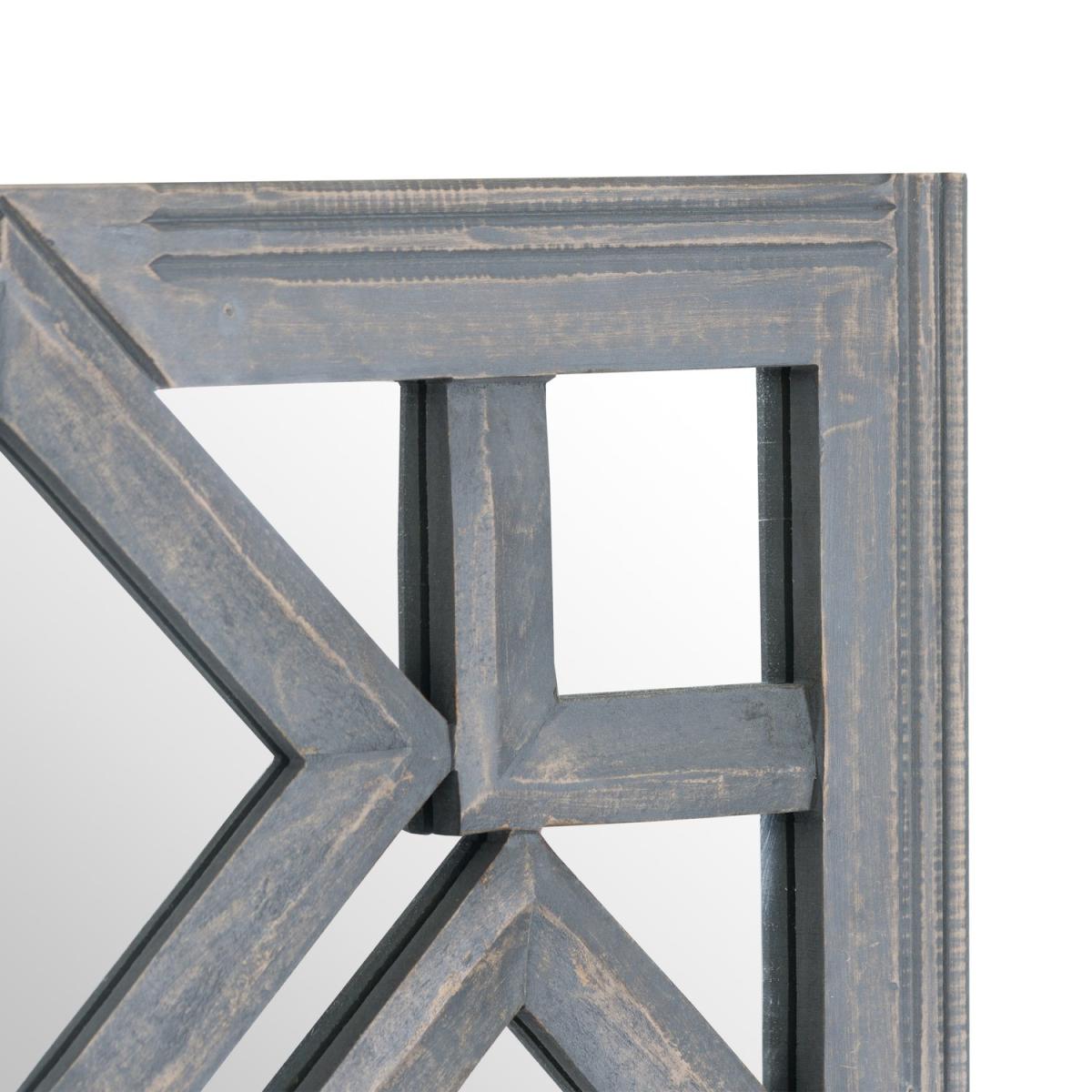 Dimensions H60 x W60 x D1.7 cm. The Geometric mirror will look great in any room in the home. The inner geometric pattern adds a certain charm to the wall mirror. Features. Square mirror. Wall hanging. Grey frame. Inner geometric design. The perfect addition to any room in the home. No assembly required..