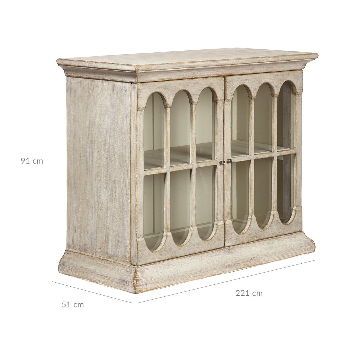 Consider all your storing and displaying needs sorted with this sideboard, which shares all of the attributes of the original Gustaf, simply on a smaller scale. Inspired by Swedish-Gustavian design, this piece features a light grey finish with two handy shelves inside.
