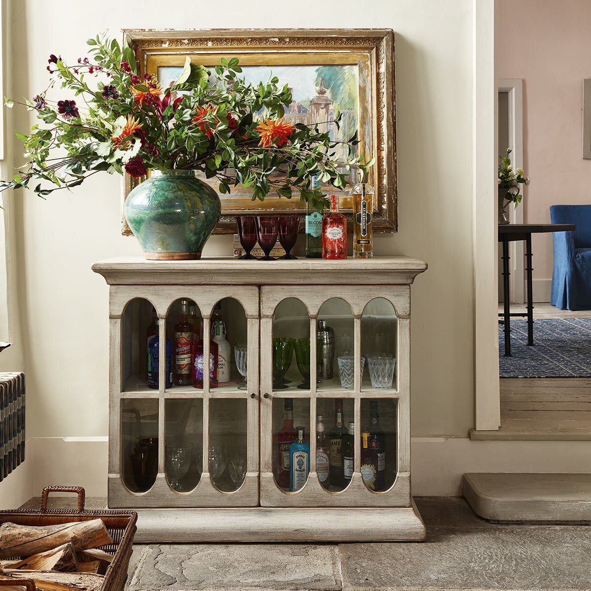 I love this sideboard for its charming, vintage-inspired look with a versatile grey wash finish that complements a range of interiors. It works particularly well in rustic, shabby chic, or coastal styles, bringing both character and practicality. Practical styling tips include using the top surface for display or organising everyday items, while the glass-fronted doors are perfect for showcasing dishware or decorative pieces without clutter. Its compact size makes it an adaptable piece for smaller living spaces or underused corners, adding visual interest without overwhelming the room. Overall, this small gustaf sideboard is an easy way to introduce storage and style with a touch of nostalgic appeal.