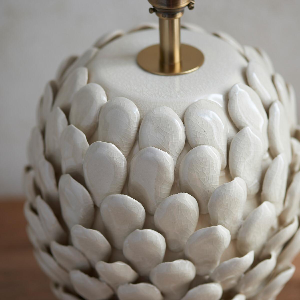 A beautifully organic shaped ceramic table light base, decorated with handmade leaf shaped details and brushed aged brass switched B22 lamp holder. Pair with one of our decorative fabric or raffia shades to complete the look. Product Dimensions: Sizes Available:1. 2. 3. 19cmx19cmx31cm Parcel 1 Packaged Dimensions: 38cmx30cmx30 Weight: 3123. Composition: Brass / Ceramic / Steel. This product will be dispatched by one of our trusted suppliers. You’ll be contacted by their selected courier about your delivery.