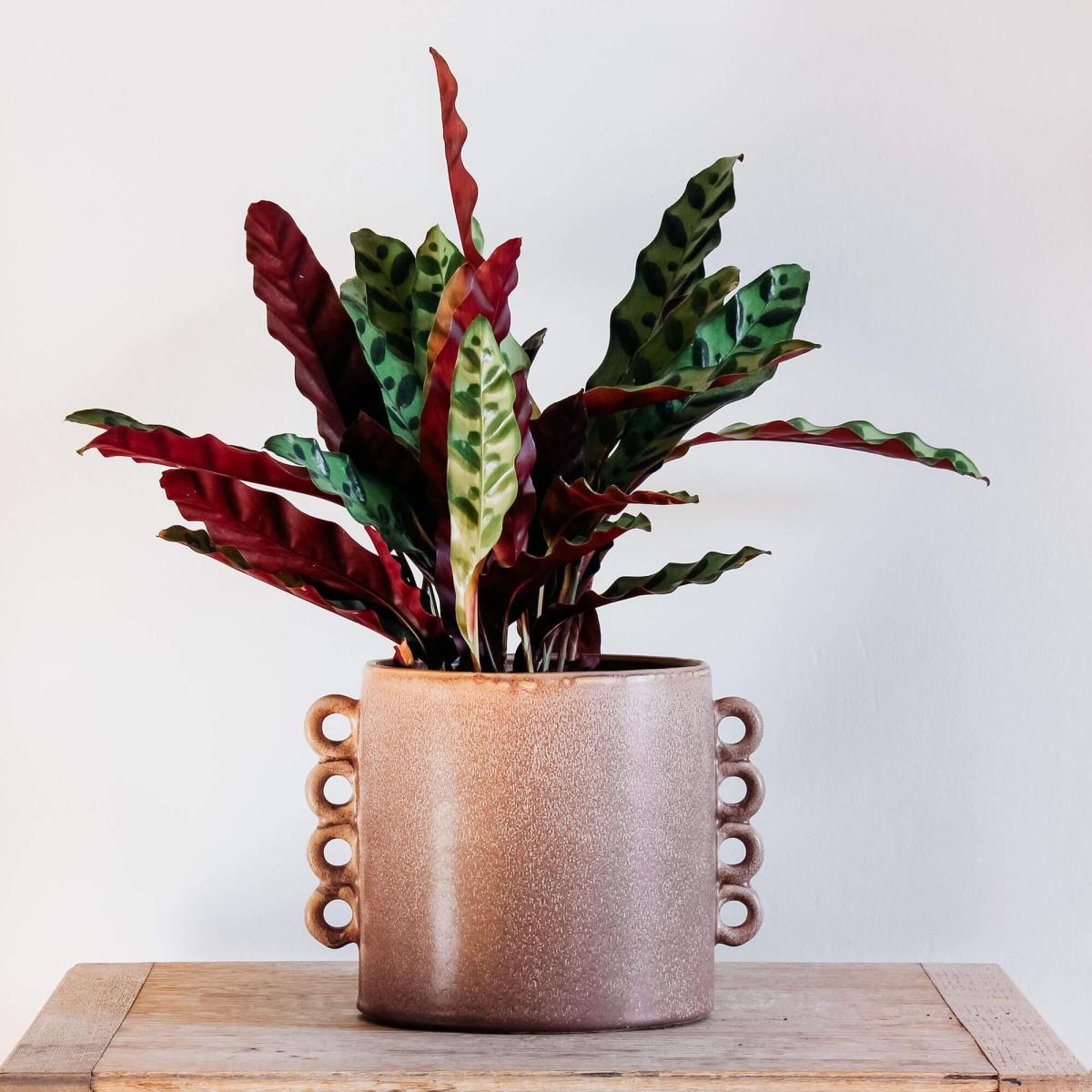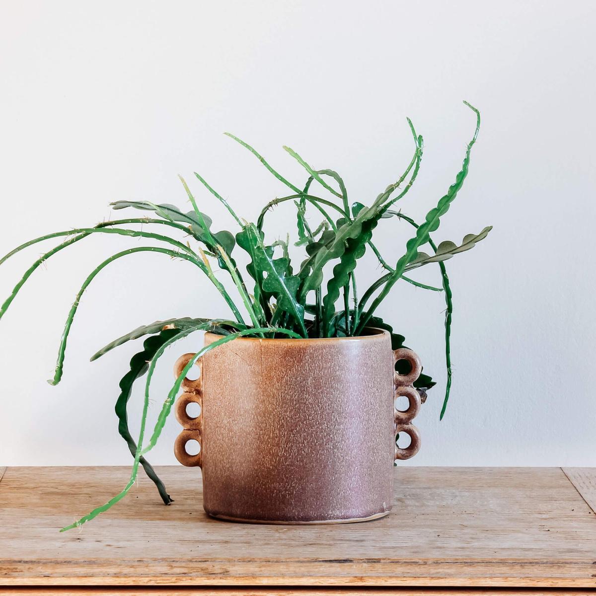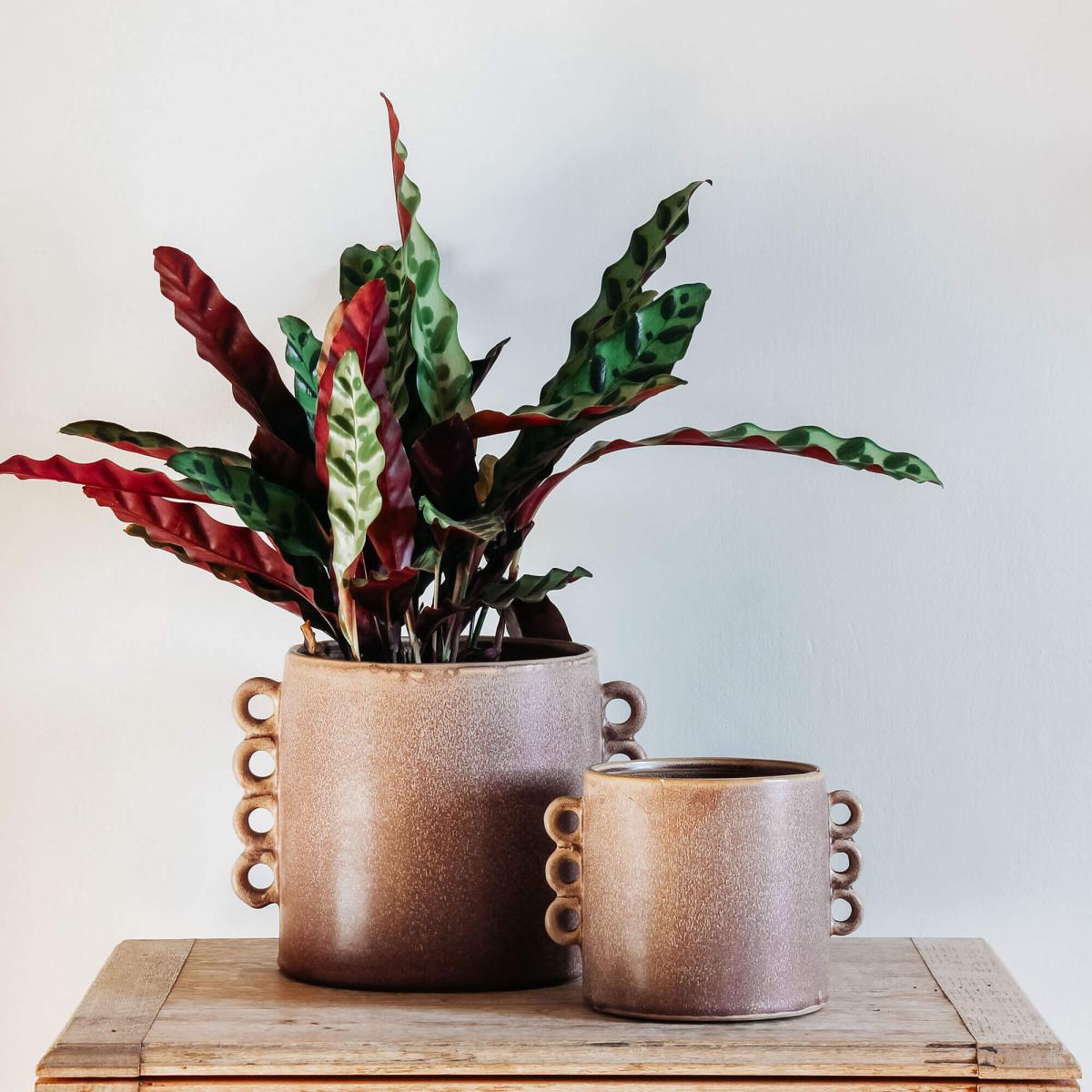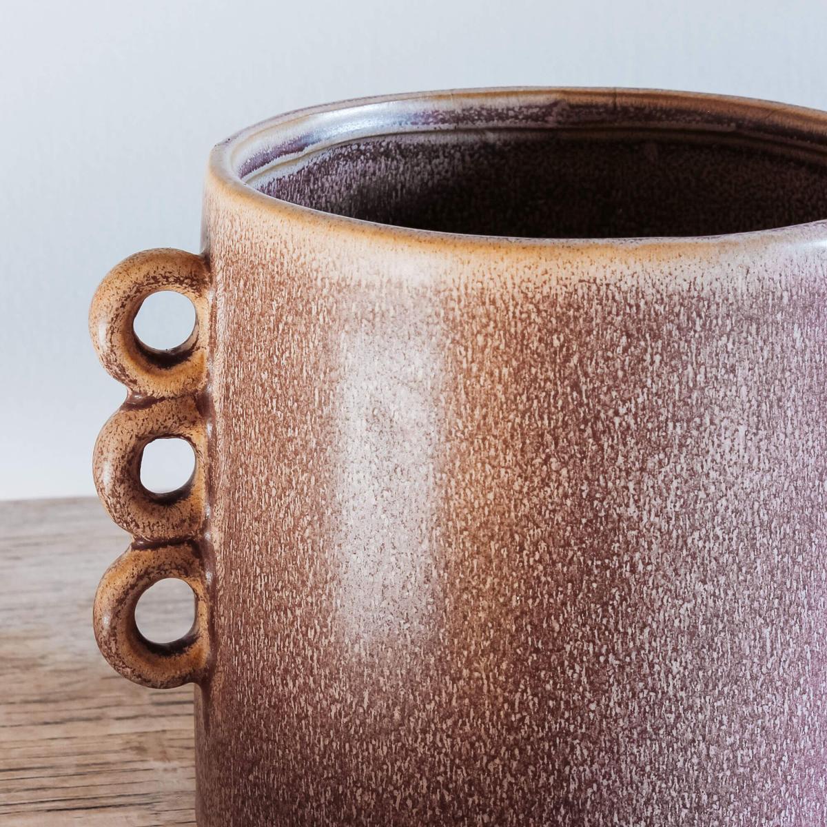 Simplistically stylish, this stoneware plant pot has a rustic finish and scalloped circle handles.