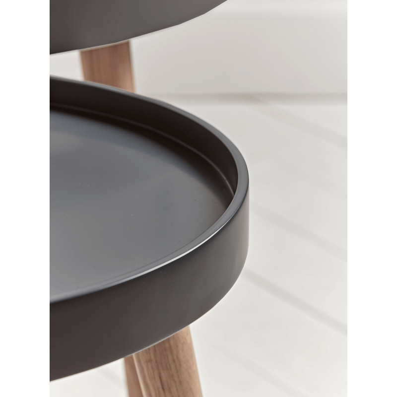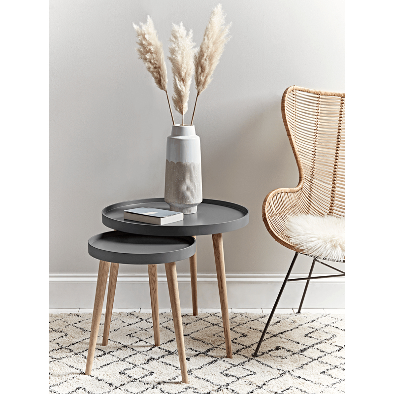The epitome of elegant Scandi style, our Mila side tables in small and large will add a decorative and practical touch to any room in your home. Each table features a round top with a lipped edge, painted in the perfect shade of charcoal grey, and three slender oak legs. Each sold separately.