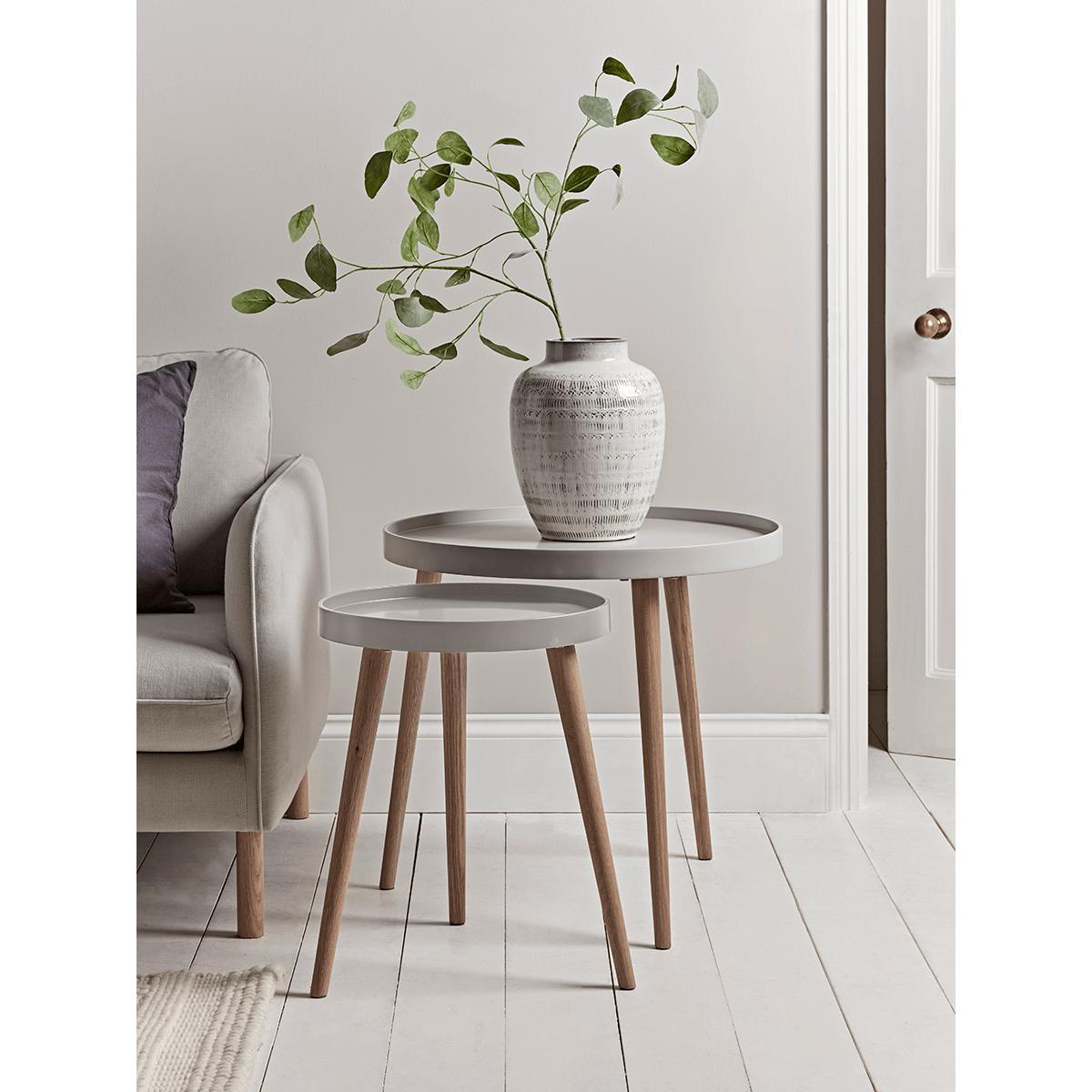 I love this little grey side table for its simple, versatile design. It works particularly well in Scandinavian or modern interiors, adding a soft, neutral touch without overpowering the space. Its compact size makes it perfect for cosy corners or as an accent alongside a sofa or armchair. A handy tip is to style it with a small lamp, a stack of books, or a decorative vase, which can elevate a room’s look effortlessly. The natural wooden legs add warmth and texture, making it easy to blend with a variety of colour schemes and materials. Overall, it’s a practical yet stylish piece that can be easily adapted to different rooms and styles.