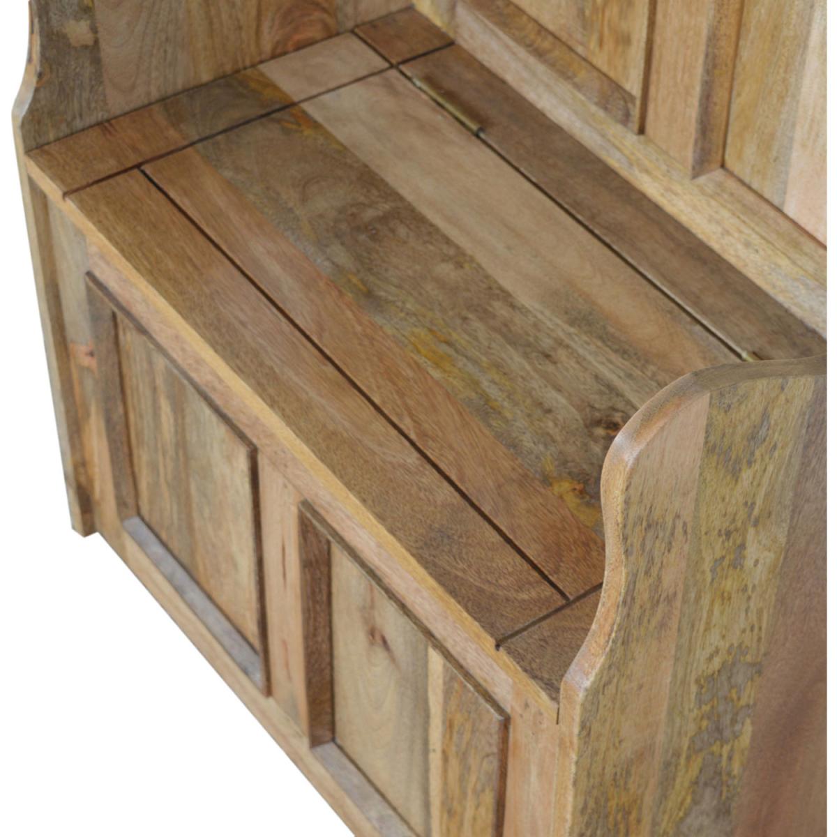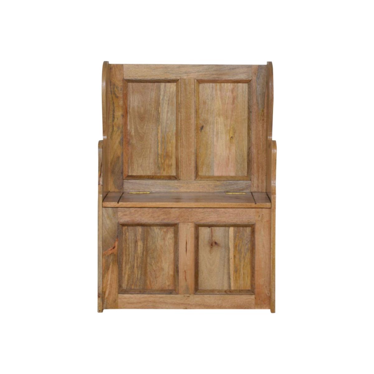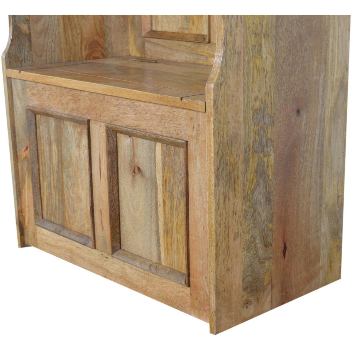 Fitting neatly into smaller hallways, this Small Monks Storage Bench makes an ideal spot for putting boots and wellies on or off. With plenty of storage space inside, this beautifully designed country style inspired bench is handmade from solid mango wood in an oak-ish finish. It features exquisitely carved sides and intricate panel detailing on the front and seat back it provides convenient storage without taking up too much space.