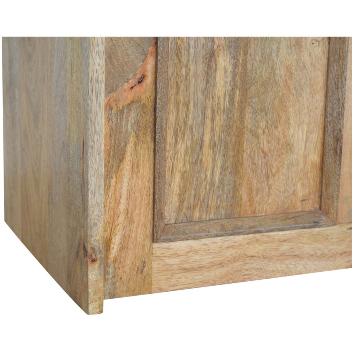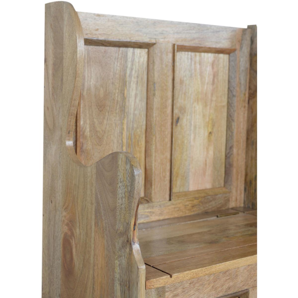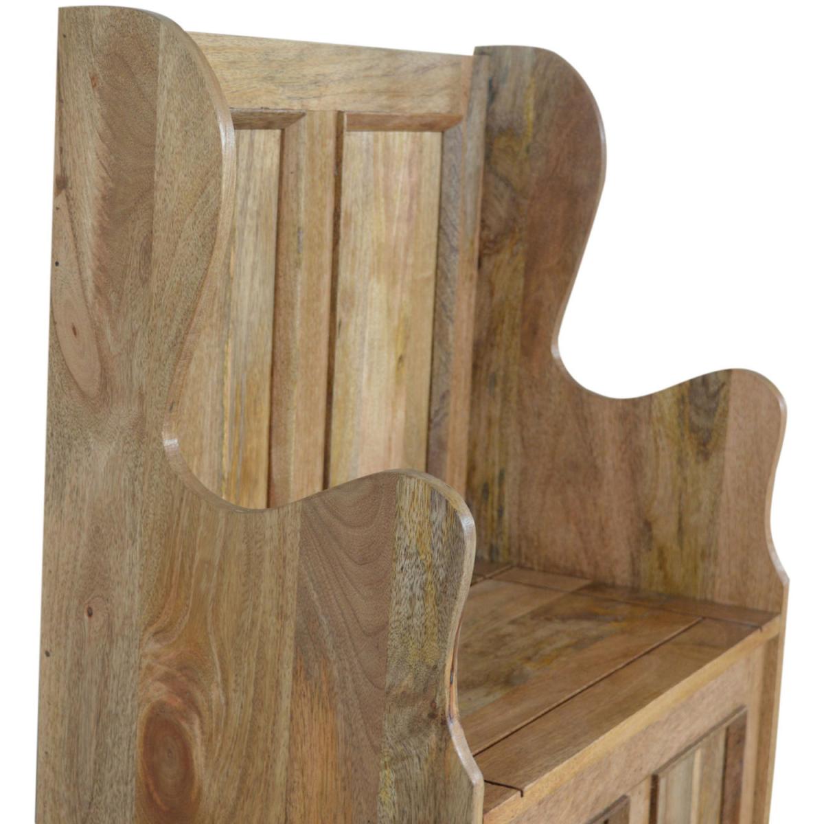 Fitting neatly into smaller hallways, this Small Monks Storage Bench makes an ideal spot for putting boots and wellies on or off. With plenty of storage space inside, this beautifully designed country style inspired bench is handmade from solid mango wood in an oak-ish finish. It features exquisitely carved sides and intricate panel detailing on the front and seat back it provides convenient storage without taking up too much space.