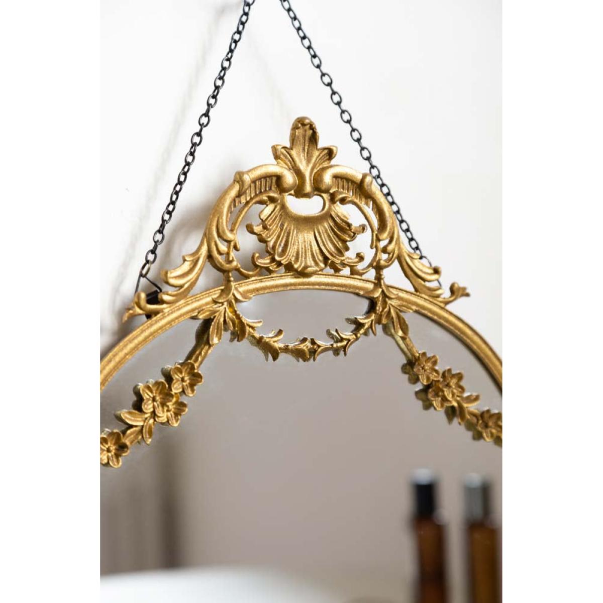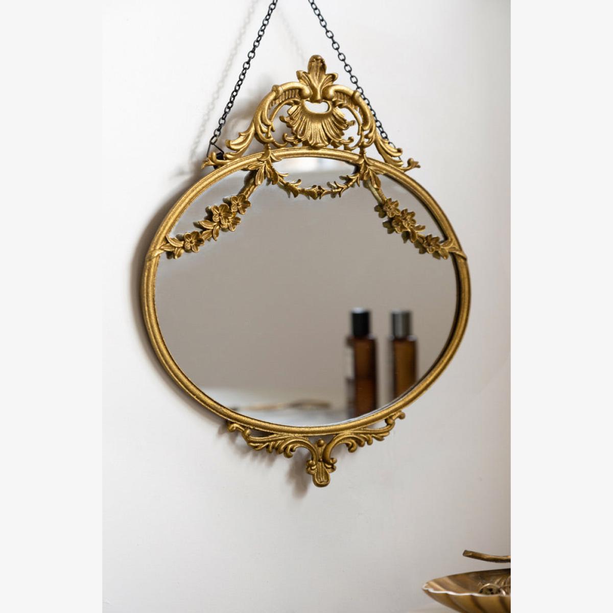 About The Small Pretty Gold Hanging Mirror The gorgeous Small Pretty Gold Hanging Mirror is the perfect way to add a hint of vintage style to your home. Designed in an oval shape with delicate floral garlands, the mirror creates an eye-catching and beautiful home accessory. Measuring H31.5cm x W26cm x D2cm, the gold hanging mirror is perfect for a bedroom, cloakroom, or entrance hall. Let’s face it, it is always nice to double-check your face before leaving the house and this mirror is perfect for that job! Why We Think You’ll Love The Small Gold Wall Mirror Detailed and totally gorgeous, the small ornate gold mirror is one of those designs that looks great everywhere. In addition, our Co-founder Jane reports feeling like a princess when using it. As we all need to feel like a princess every now and again, we strongly recommend bringing this beautiful gold mirror to the walls of your home! How To Style The Ornate Gold Hanging Mirror This beautiful gold mirror is perfect for your bathroom, adding a healthy dose of vintage flair to the space. It would also work wonderfully in a hallway or styled above a console table with vintage prints, vases and flowers. However you decide to use this oval gold mirror, you will be sure to love it every time you step foot in front of it!