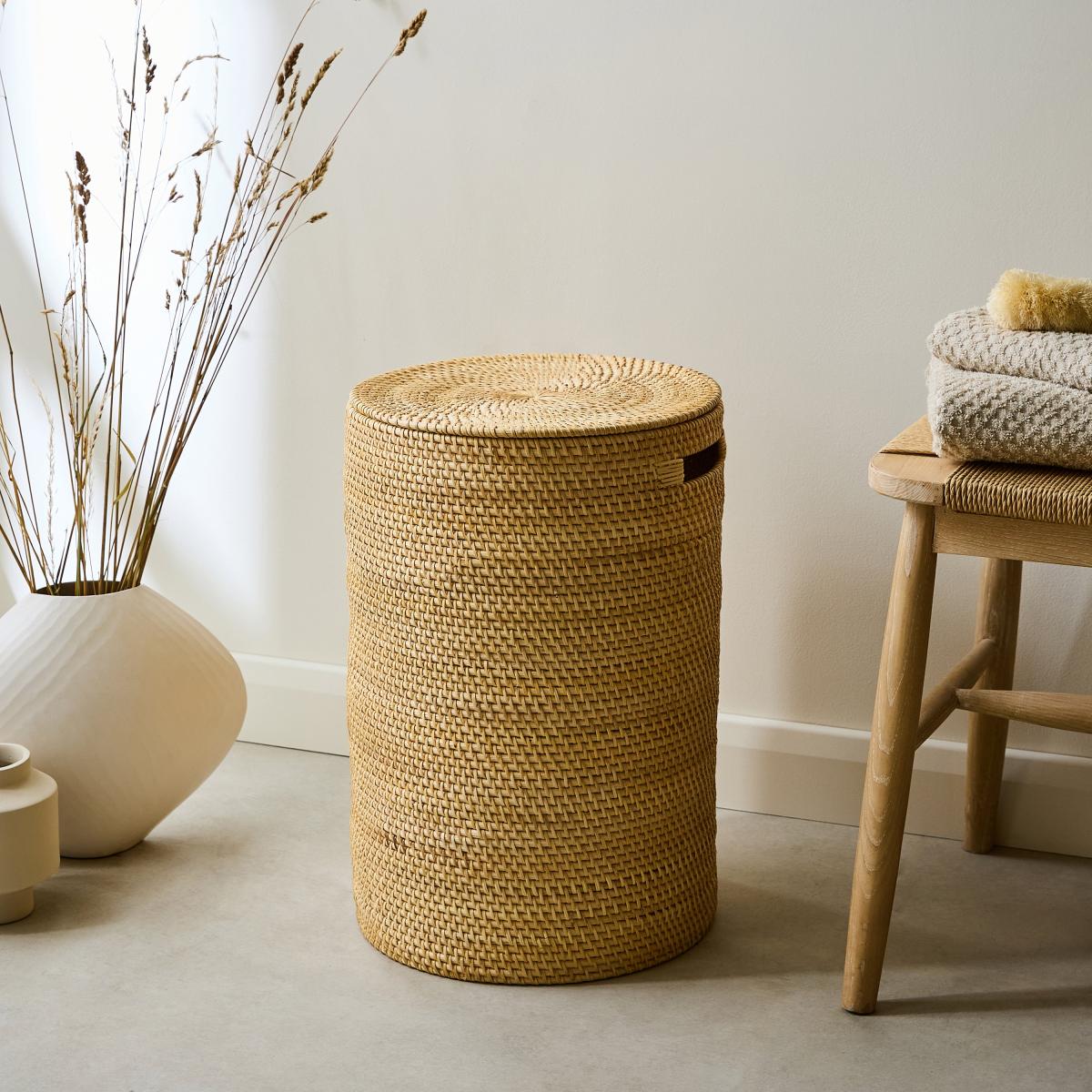 **The Edited Life **- Large Rattan Laundry Basket with Lid* Hand made* 100% rattan* Natural woven look* Complete with lid* Available in a smaller size Bring a natural feel to your bathroom with this hand woven Laundry Basket. It has a large capacity and a lid to keep everything neat, along with handle slots for easy carrying. Make laundry a stylish part of your bathroom. Live well. Mean well. Be well. Many of us want to live simpler, more responsible lives. As we become more aware of our surroundings and understand how our choices contribute to the world around us, more people are choosing to consume less and curate more. The Edited Life introduces a new era of thoughtfulness in the home, with an understated collection of pieces chosen for their simple beauty, quality craftsmanship and innate usefulness that will last beyond any trend. Having it all is no longer the goal; having enough, and it being just right, is.