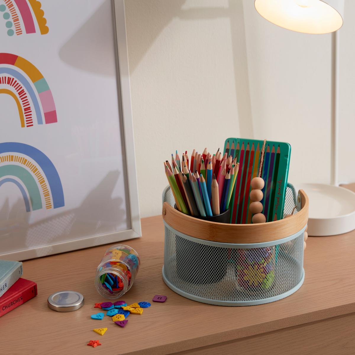 I love this little Wire Mesh Basket in seafoam for its versatility and subtle colour. It’s perfect for adding a touch of organisation to a desk or sideboard, and its open wire design keeps everything visible and accessible. This basket works well in contemporary and coastal interiors, providing a modern twist while maintaining a natural, airy feel. Practical styling tips include using it for craft supplies, toiletries, or small accessories - it can easily be layered with other organisers for a tidy look or placed solo to introduce texture. Its colour makes it a great complement to muted tones or pastel palettes, helping to keep a space looking fresh and uncluttered.