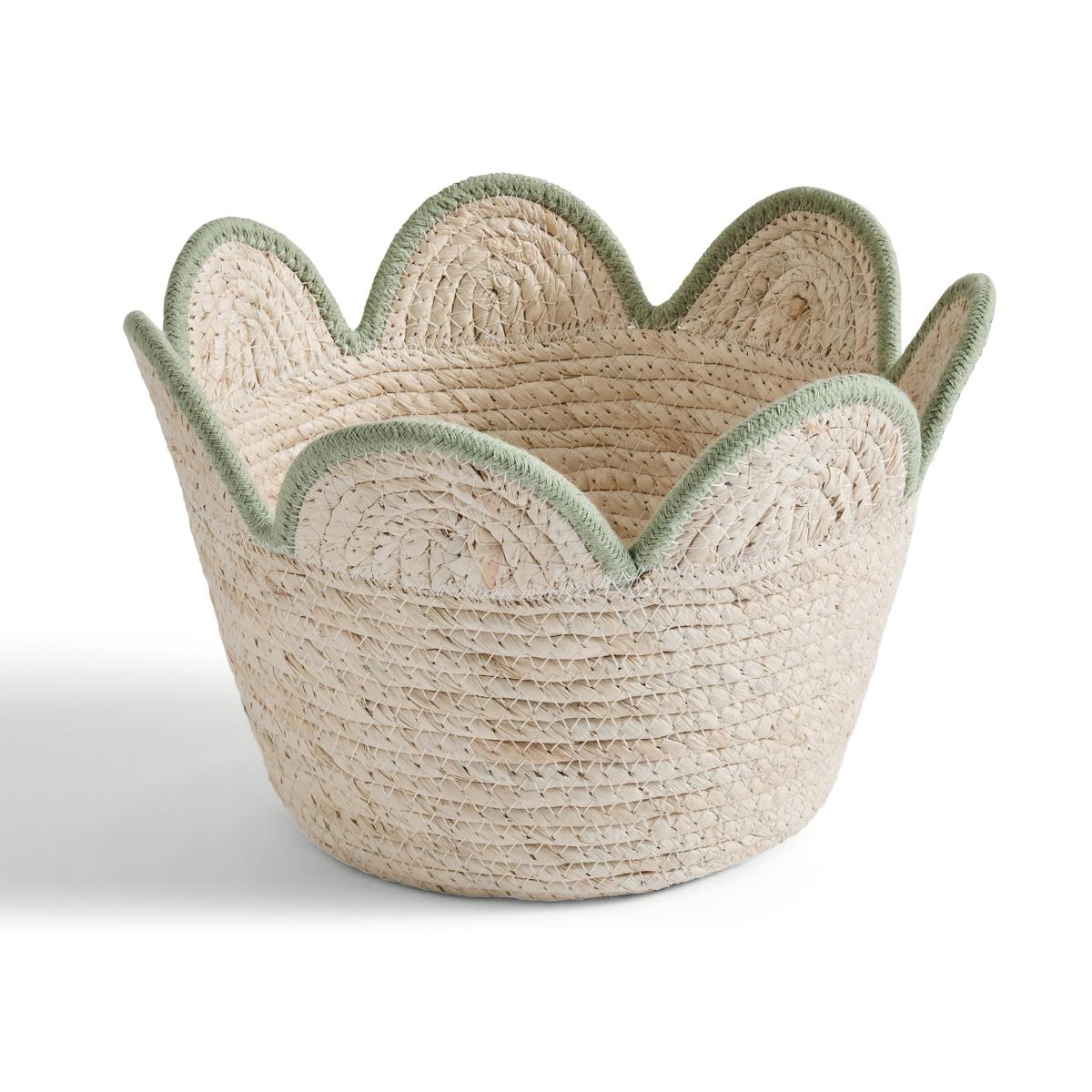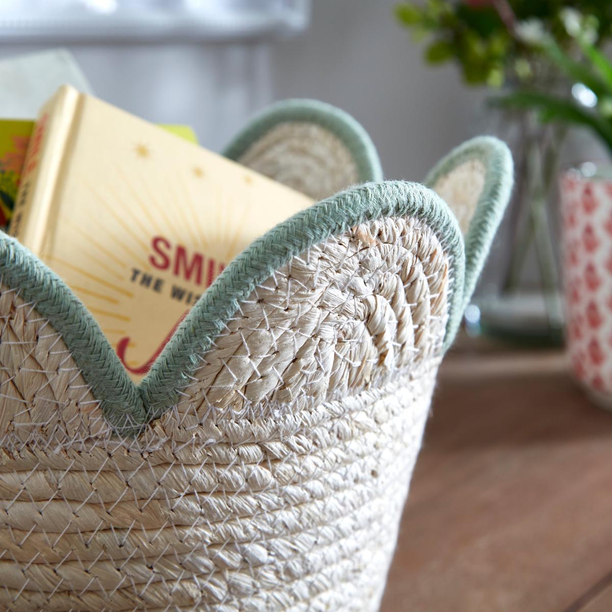 I love the small scalloped maize basket in green for its charming, handcrafted look that adds texture and a pop of colour to a variety of interiors. It works particularly well in cosy, eclectic, or rustic spaces, where its natural material and subtle colour can complement both neutral tones and vibrant hues. Practical styling tips include using it to organise everyday items like magazines, toys, or crafting materials, keeping surfaces tidy yet stylish. It’s also a lovely way to introduce a touch of nature indoors, especially when paired with fresh flowers or greenery. Its versatile shape and colour make it an easy addition to shelves, countertops, or as a centrepiece, providing both function and visual interest.