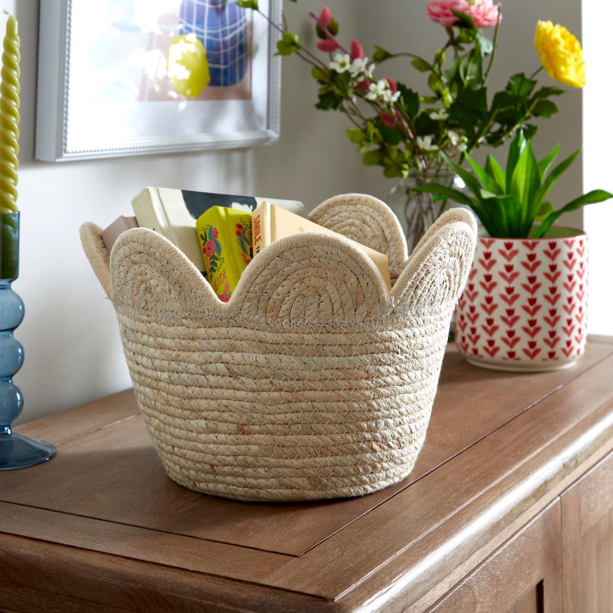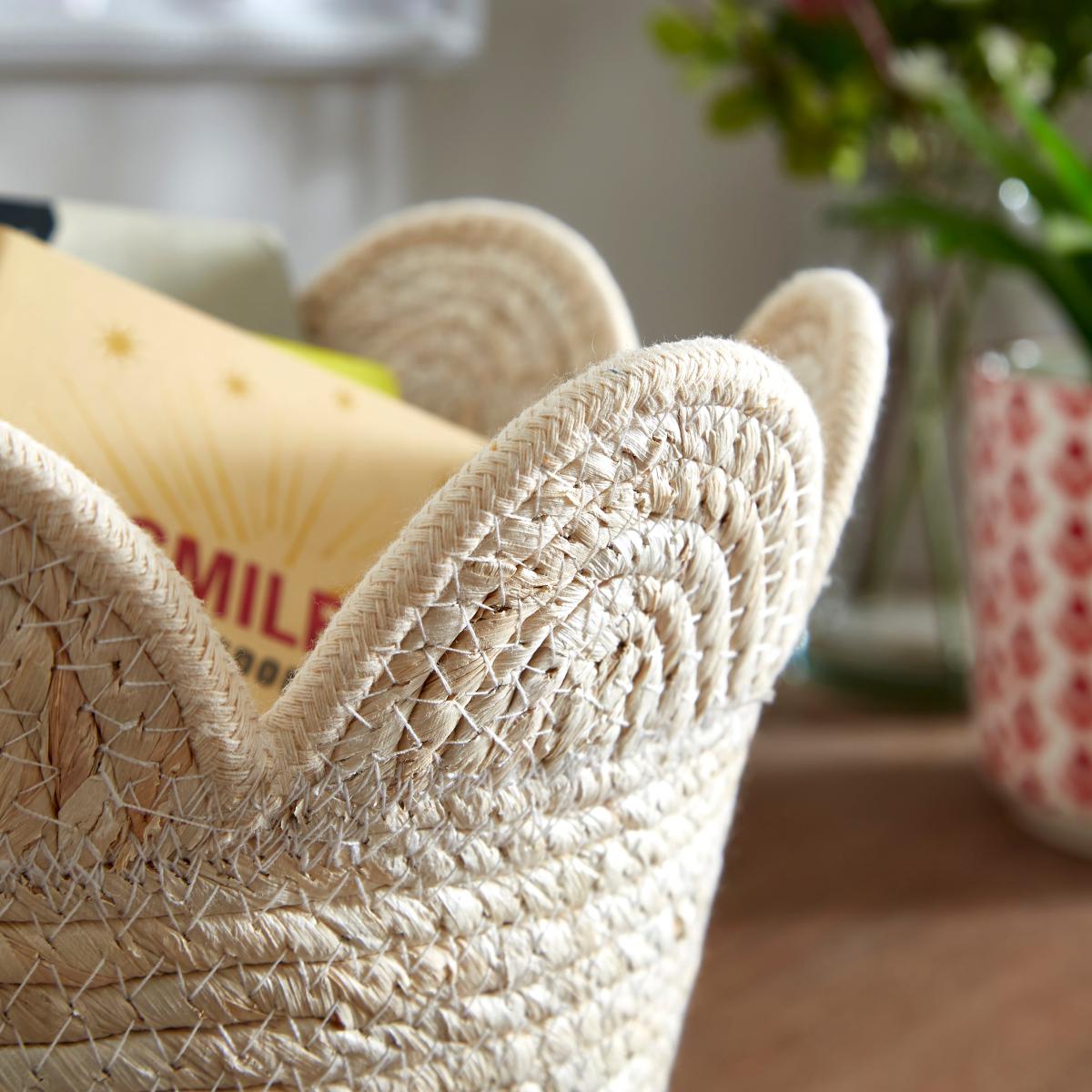 I love this little basket for its versatility and natural texture. Its neutral tone makes it a great addition to both modern and rustic interiors, offering a warm, organic touch. It works well as a standalone piece or as part of a styled vignette-think placing it on a coffee table, shelf, or bathroom counter to hold everyday essentials like keys, toiletries, or small accessories. Practical styling tips include filling it with dried flowers or cosy textiles for added visual interest, or grouping it with other natural materials to create a layered, curated look. Its manageable size makes it perfect for organising smaller items while adding subtle style to any space.