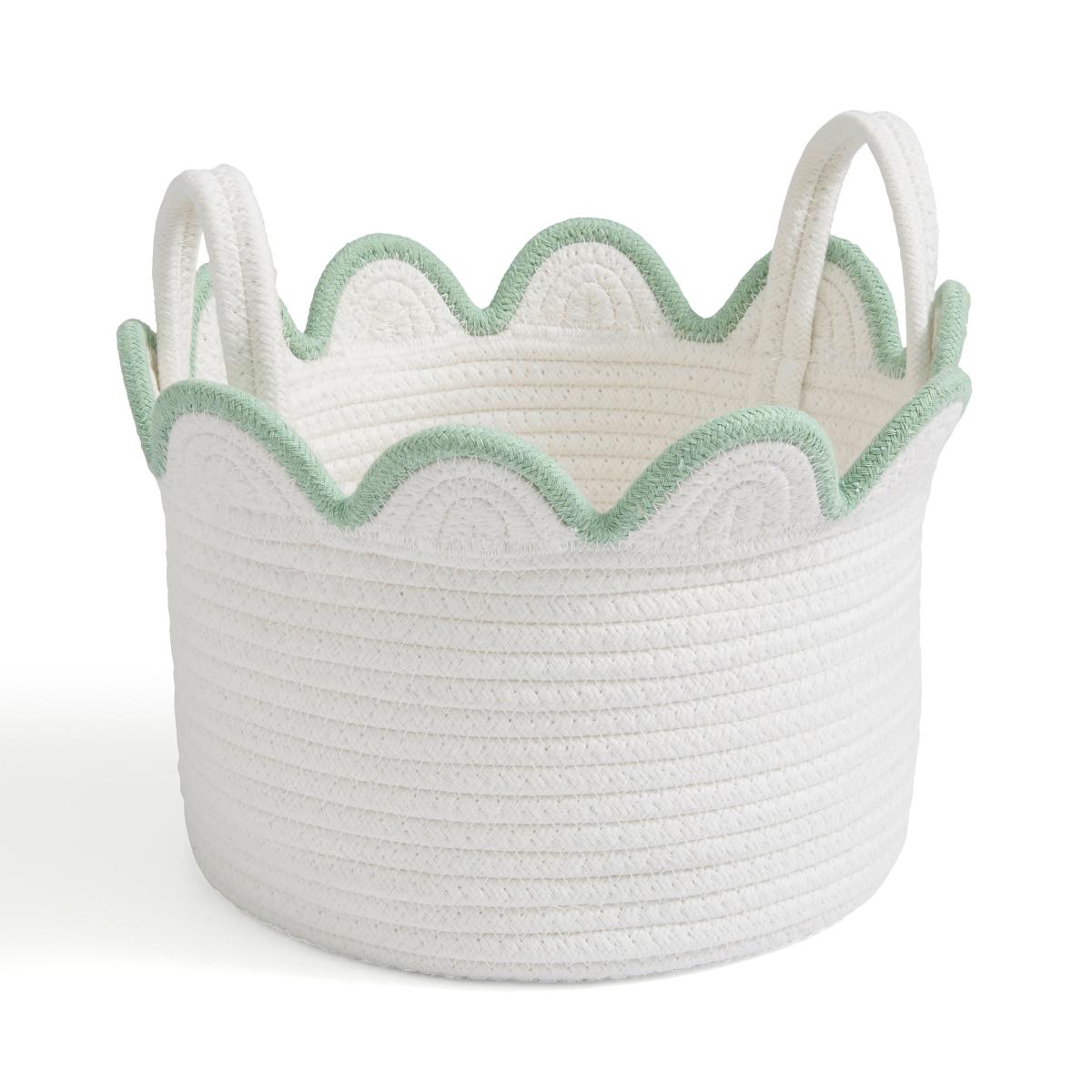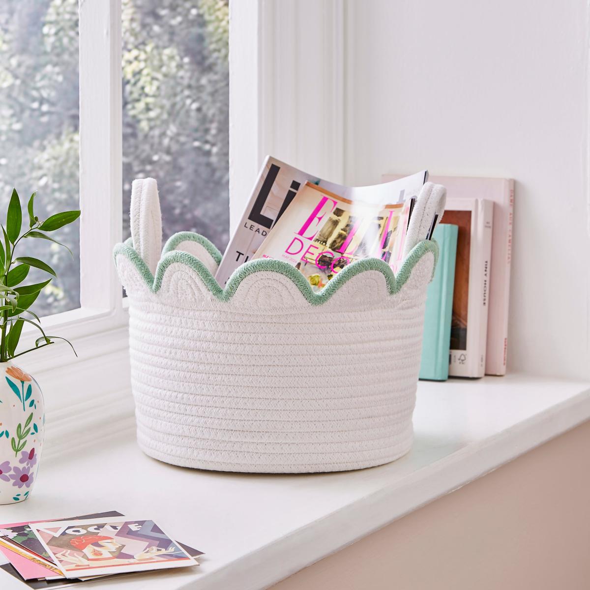 * Versatile storage solution* Stylish colours* Scalloped edge detail* Fabric rope construction* Carry handles This small storage basket is made from fabric rope and is available in a choice of colours. The basket features a stylish scalloped edge with contrasting trim, and carry handles so it's easy to move around. Perfect for keeping those smaller items tidy, this is a versatile, space-saving and pretty addition to your home.