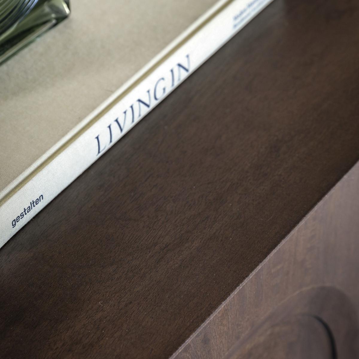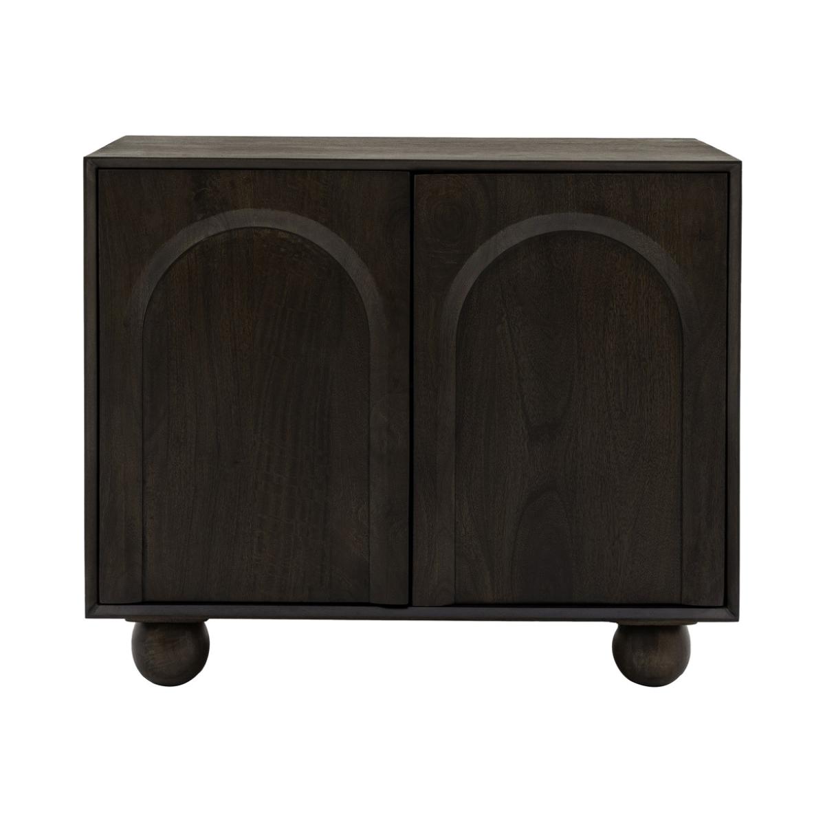 Dimensions:W85 x D45 x H70 cm With a 70s influence, this sideboard exudes retro cool. The dark stained Mango wood is full of rich grains which is highlighted by the relief arch design in each of the 2 doors. Finished off with rounded ball feet and internal shelves offering plenty of storage this unit is a must have for any trendy home. A 4 door option is also available, as well as further coordinating pieces. Features: Small Walnut stained Mango wood Rectangular Storage 2 Doors and 1 Shelf Rounded ball feet Internal shelves Anti Topple Kit Distance between shelves 27.7cm Matching items available Some assembly required