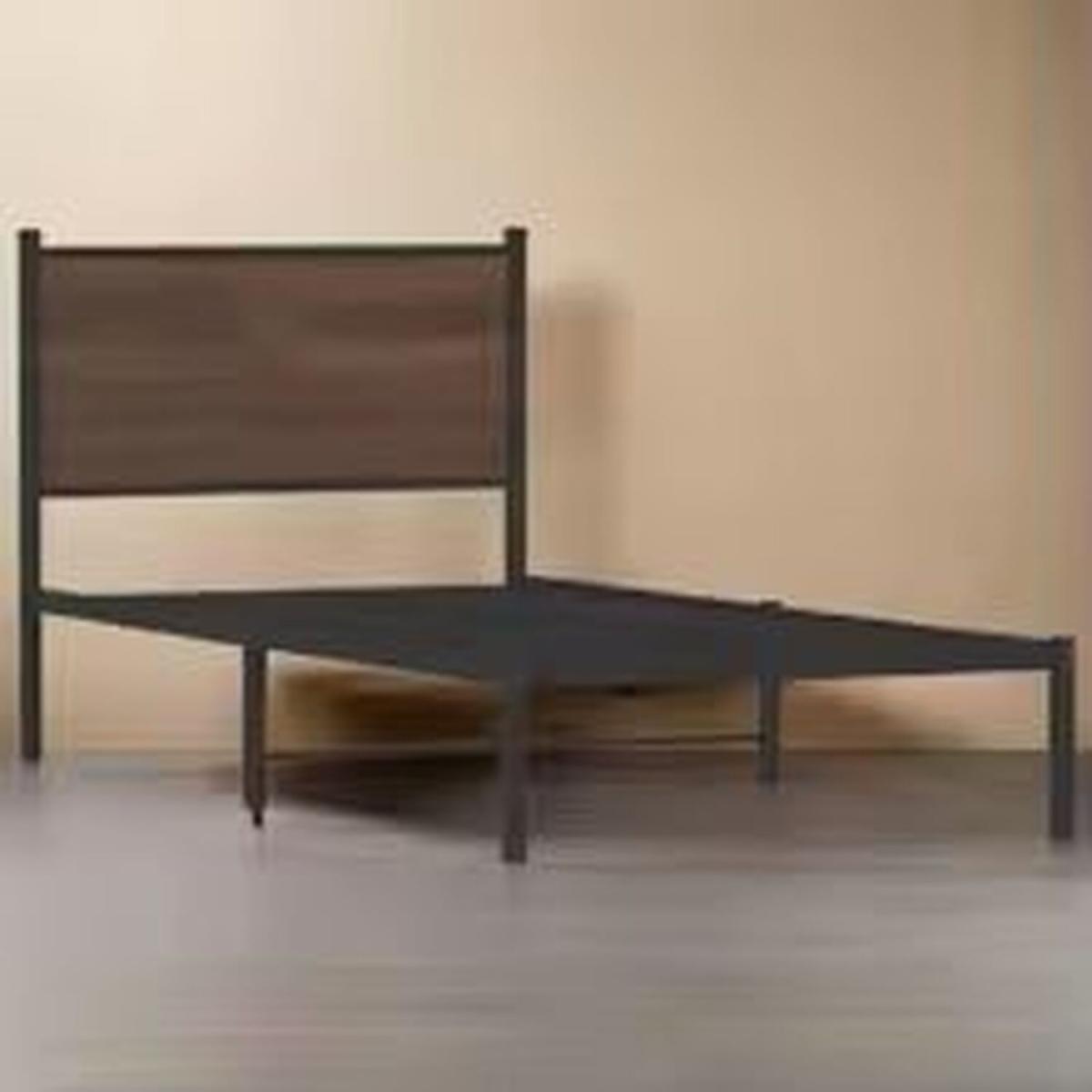 Blending metal and wood, this bed frame offers a modern industrial look with strong support. The robust metal base pairs perfectly with the warm wooden accents, providing a stylish yet functional centrepiece for your bedroom. Ideal for contemporary spaces seeking a durable and unique bed.