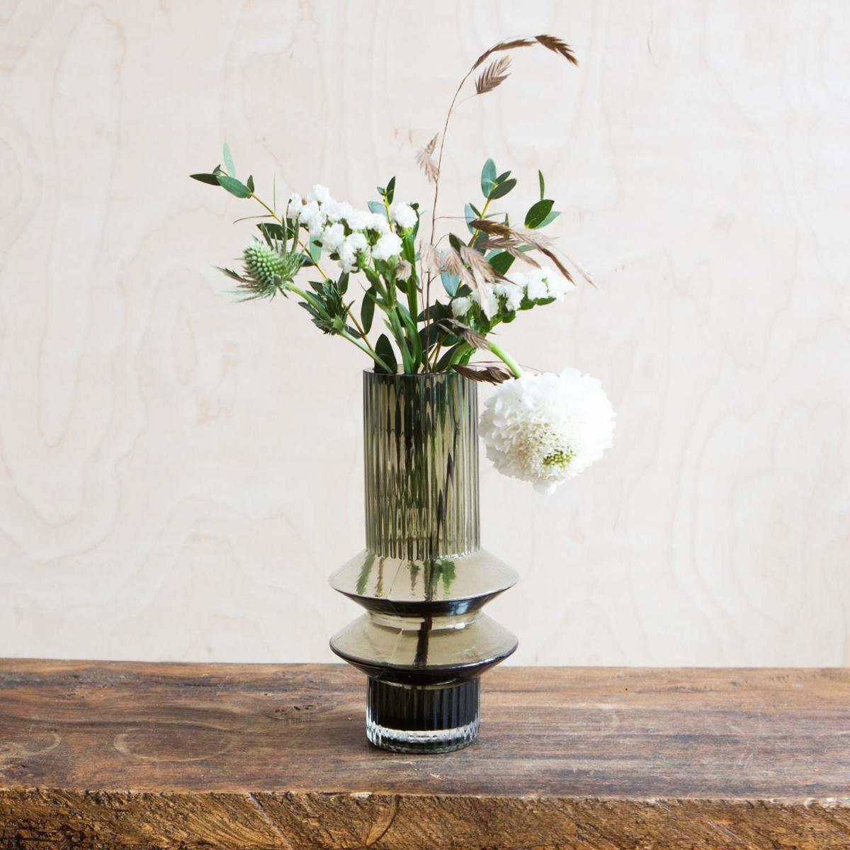 I love this small smoke green ribbed vase for its subtle colour and textured surface, which adds a touch of understated elegance to any space. It works particularly well in minimalist or contemporary interiors, where its muted tone complements both neutral palettes and darker hues. For practical styling, try pairing it with simple, organic flower arrangements or greenery-think eucalyptus or pampas grass-to highlight its simplicity. Its versatile size makes it ideal for side tables, shelves, or mantelpieces, allowing it to subtly elevate the overall aesthetic without monopolising the space.