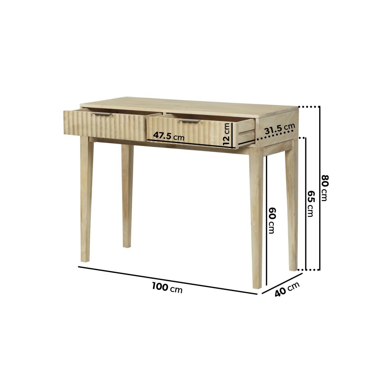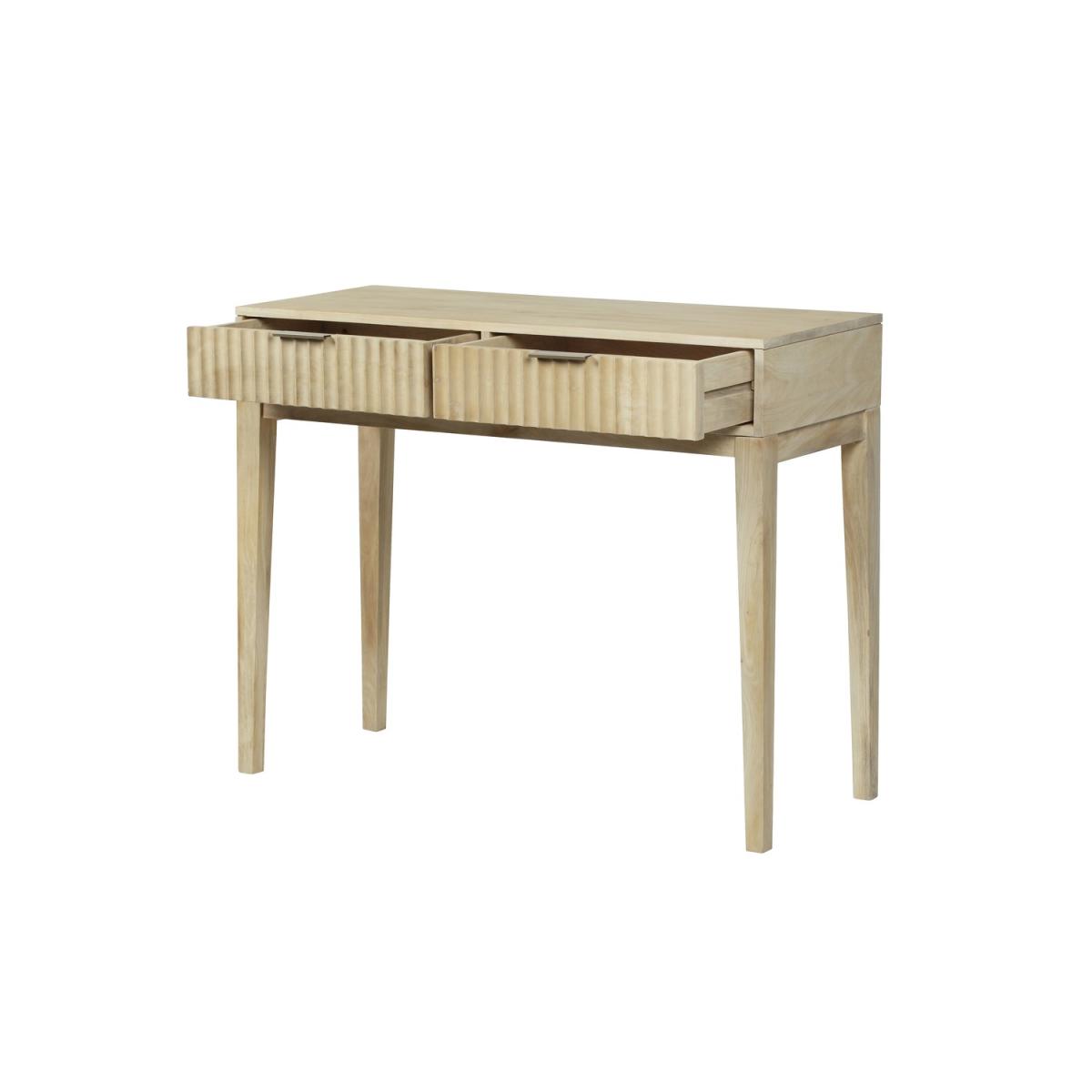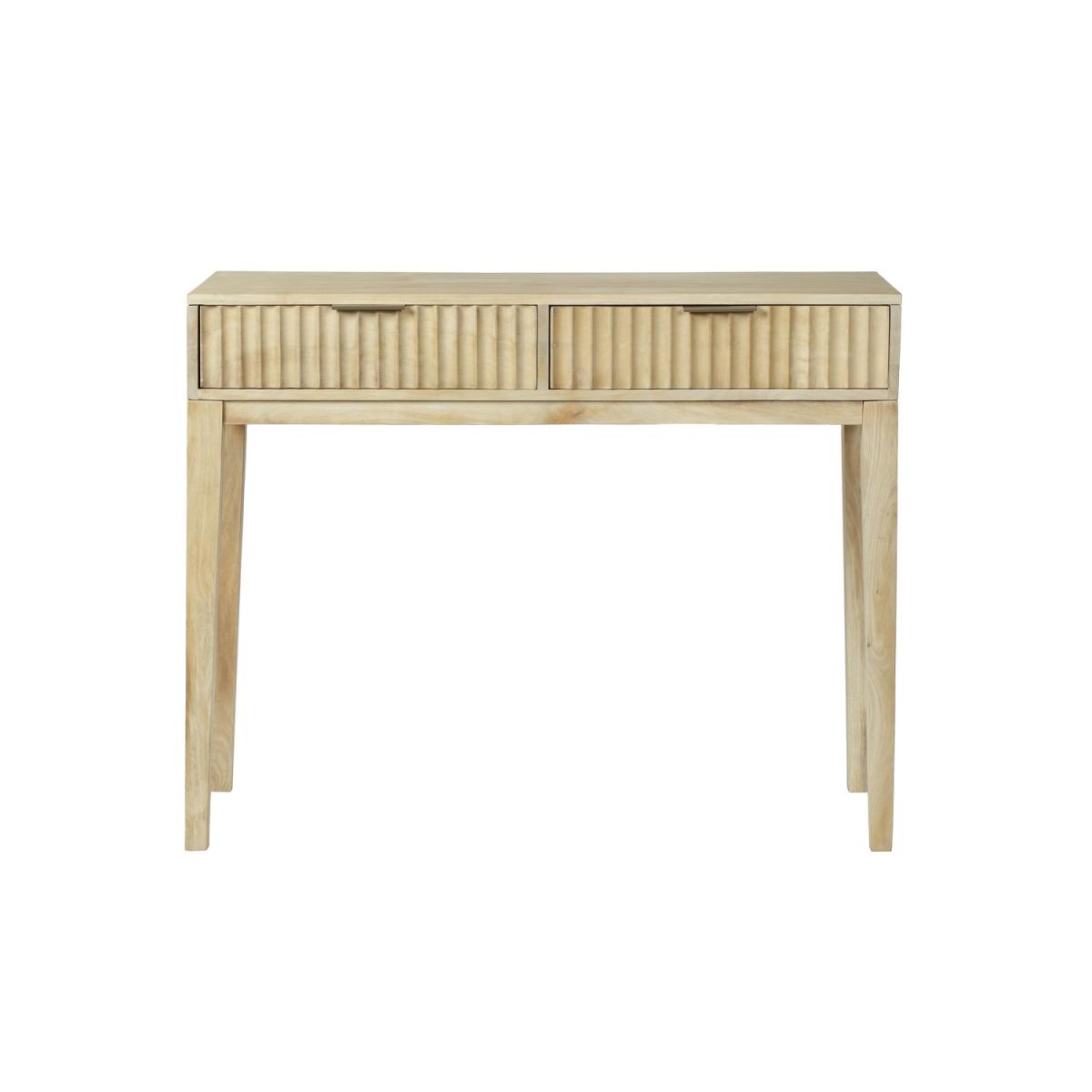 Small Solid Mango Wood Console Table with Fluted Detail Drawers - Linea