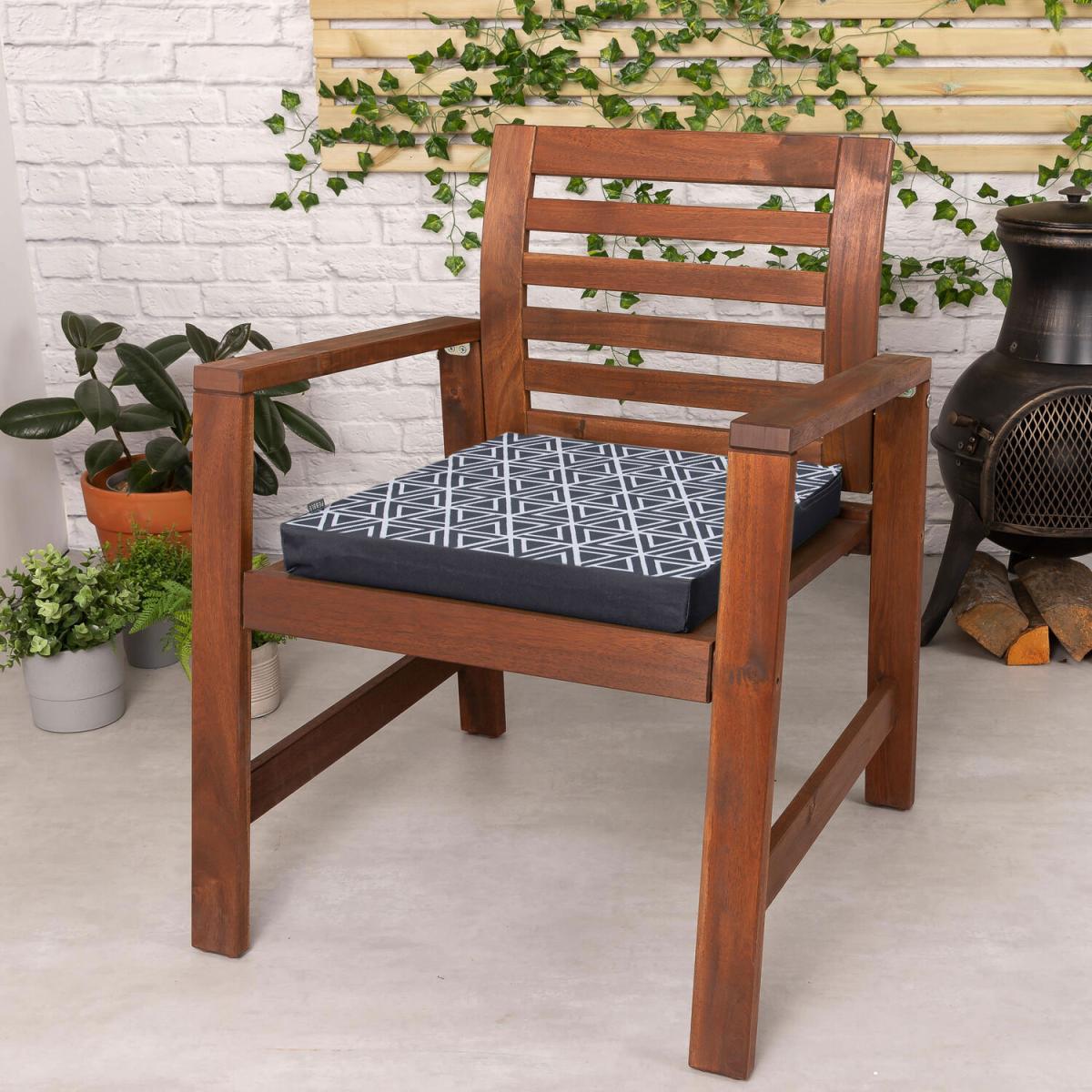 Suitable for both indoor and outdoor living spaces, this Seat Pad has a practical and chic design for adding comfort and style to the seat of a chair. Keep furniture comfortable with this thick, fibre-filled seat pad that gives an added touch of soft cushioning, as well as a look of elegant style. This seat pad is quick and simple to wipe clean and keep looking fresh during summer BBQs or garden parties. Features two matching coloured ties at the back for securing to furniture simply tie on to attach and enjoy the comfort of this foam-filled seat pad.