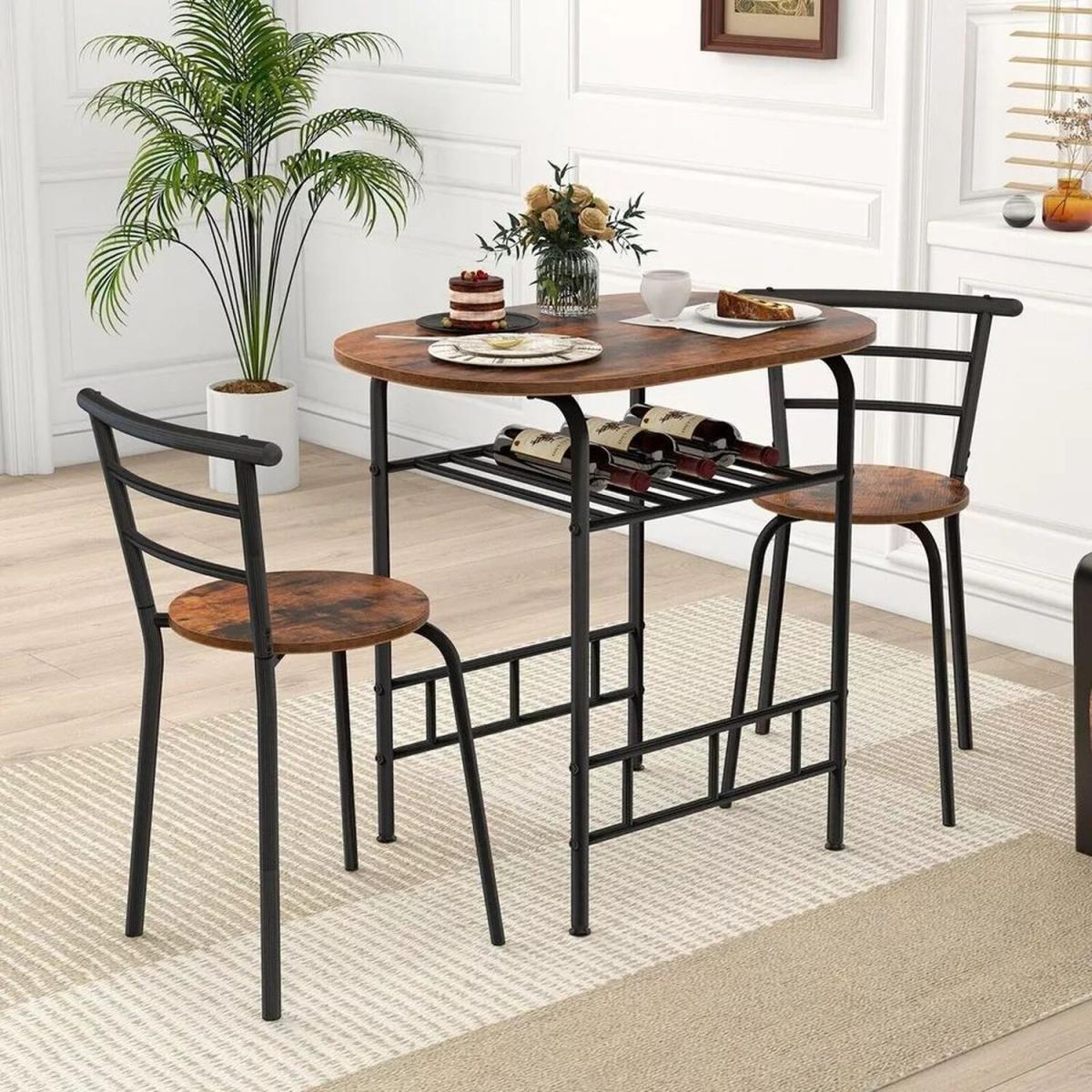 This little set is a great choice for creating an intimate dining space, especially in more compact kitchens or casual dining areas. I love how the black and brown tones add contrast and warmth, making it versatile across various interior styles - from modern-industrial to rustic or Scandinavian. To style it effectively, consider adding a simple centrepiece or colourful placemats to brighten the table, and utilise open shelving or hanging storage nearby to keep the look clean and practical. This set would work well in both cosy apartments and more relaxed open-plan spaces, offering a functional yet stylish spot for everyday meals or casual gatherings.
