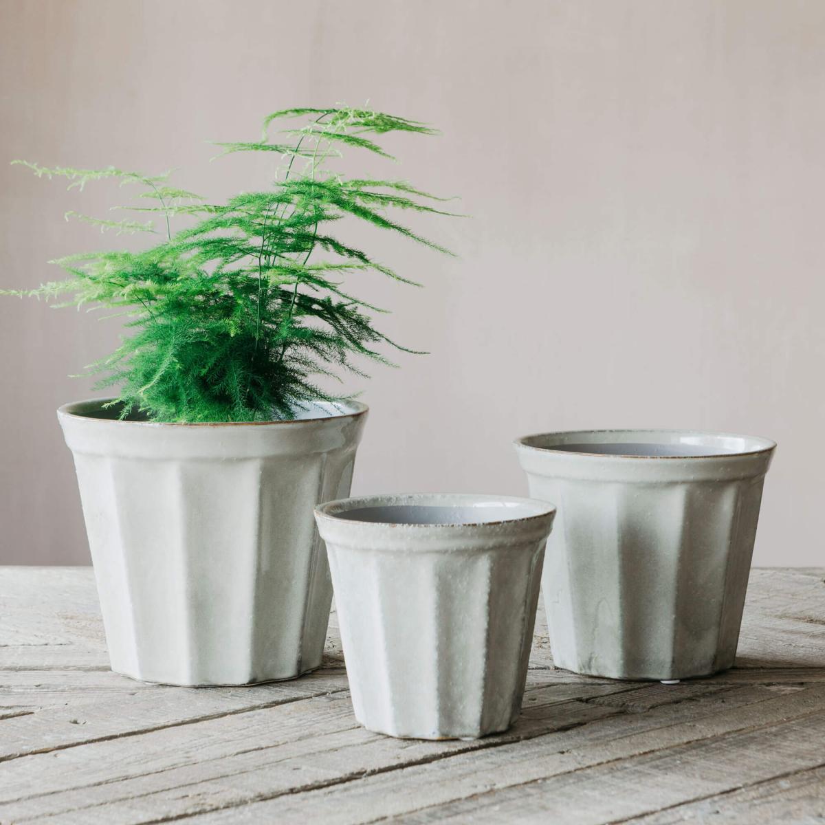 I love this small taupe ribbed pot for its simple yet elegant design - it’s versatile enough to suit both contemporary and minimalist interiors. Its muted tone and subtle ribbing give it a contemporary look that works well paired with lush greenery or succulents. Practical styling tips include grouping it with other pots in similar or complementary colours for a cohesive display, or using it as a standalone accent on shelves or side tables. Its size makes it ideal for smaller spaces or to add a touch of nature to desks and windowsills, while the ribbed texture adds a tactile element that elevates its visual appeal in neutral or modern interiors.