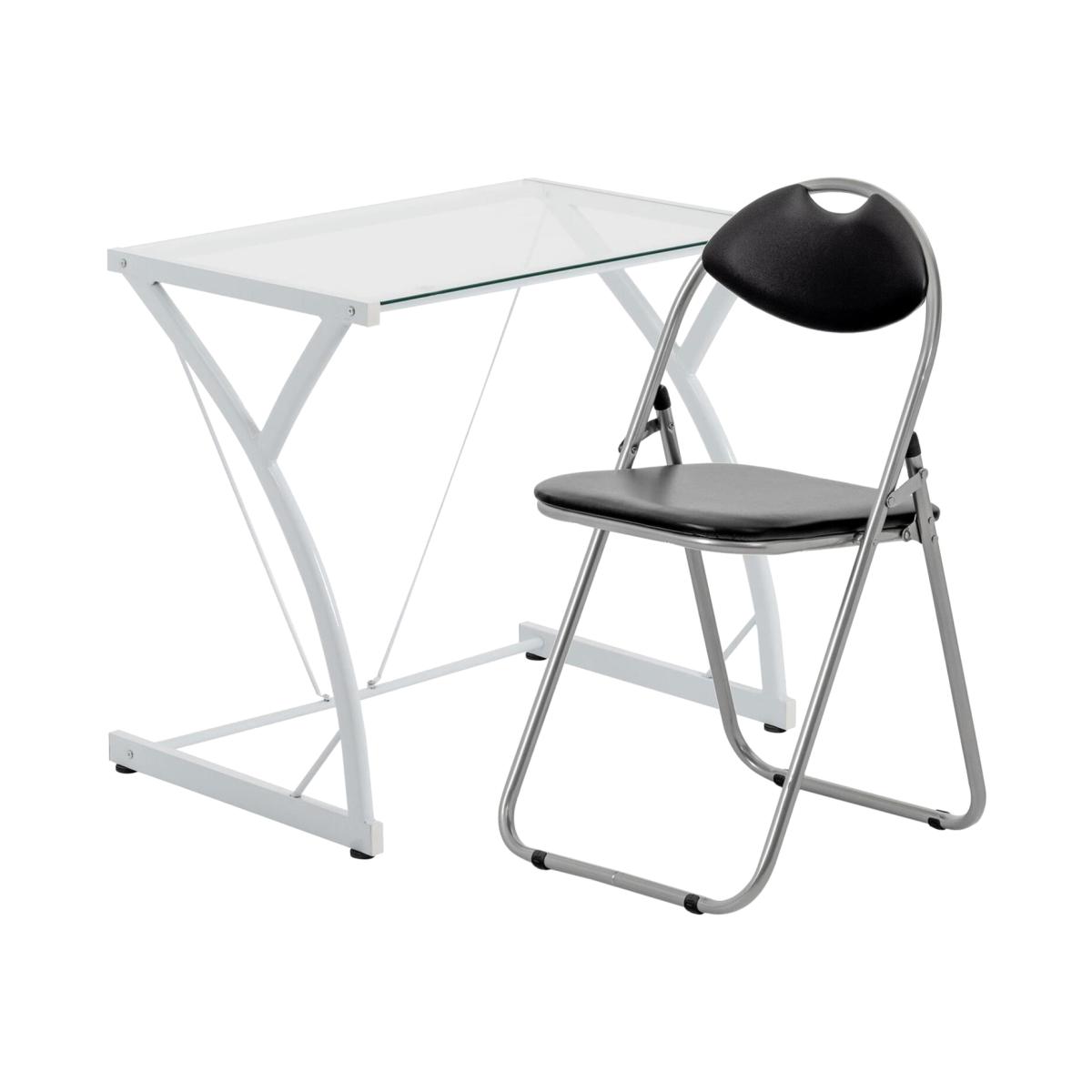 This Glass Computer Desk from Harbour Housewares makes an ideal study station for smaller spaces. With a fully-tempered worktop, this table has been built not just to survive but thrive in even the most demanding environments, from that end-of-quarter sales push to countless last-minute exam revision all-nighters! A robust steel framework provides exemplary support, with four individually-adjustable feet providing perfect stability on uneven floors. A great piece for anybody seeking some contemporary style for their home office or university dorm room, the distinctive design of this desk keeps as much of the surrounding floor visible as possible, causing smaller and more compact rooms and spaces to feel far larger than they are. This set also includes one of our Harbour Housewares Folding Chairs. Pairing that same lightweight metal framework with a layer of padding on the back and seat, this chair will have you sitting pretty from 9 to 5 and beyond!