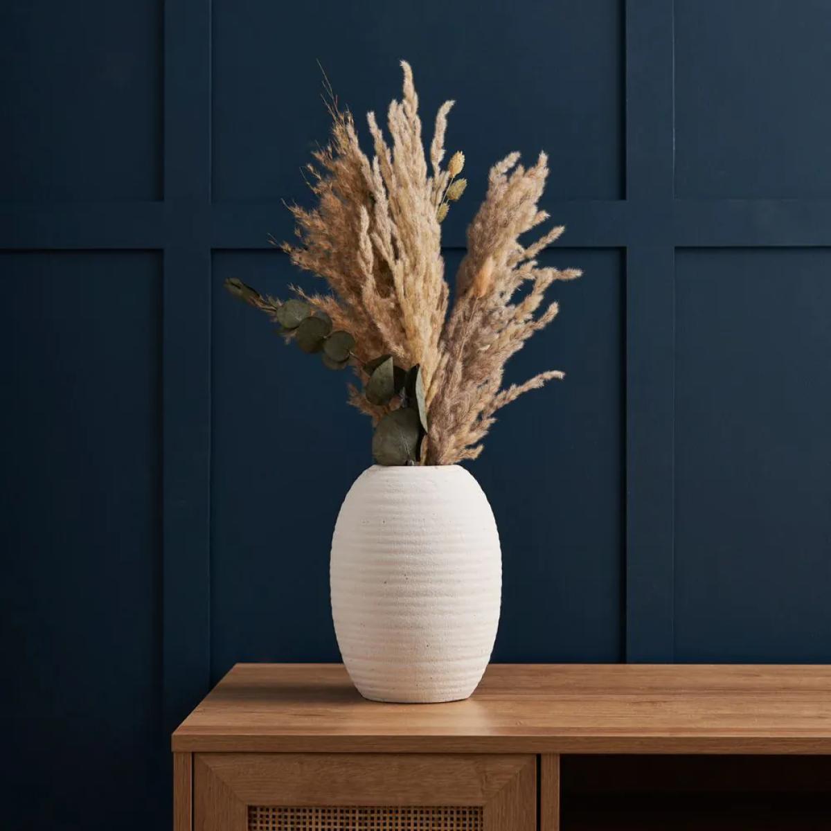 Enhance your interior with our Textured Small Ceramic Vase in Cream, a unique and artistic piece that adds visual interest to any space. The textured surface creates a captivating tactile experience, while the creamy colour complements a variety of decor styles. Its small size makes it perfect for displaying single stems or small dried floral arrangements, adding a touch of charm to your home.