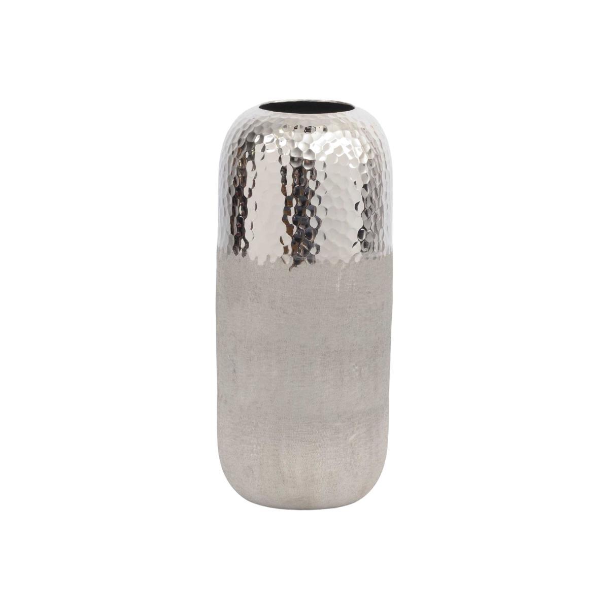 Design. Beautifully detailed with two contrasting finishes, the Small Silver Textured Hammered Vase is a modern decorative piece that looks gorgeous in a wide range of interior schemes. The metallic silver finish gives it a hint of glamour that is cool and contemporary, while the juxtaposition of hammered and spun metal is decidedly unique. Also available in Large, the vase can be displayed in a pair for effortless cohesion.